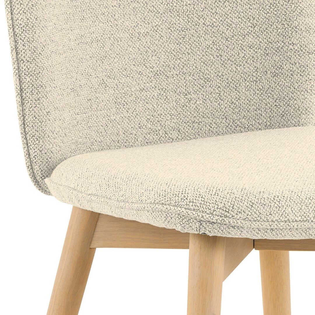 - Zostało wykonane z wysokiej jakości tkaniny bouclé i olejowanego drewna kauczukowego.