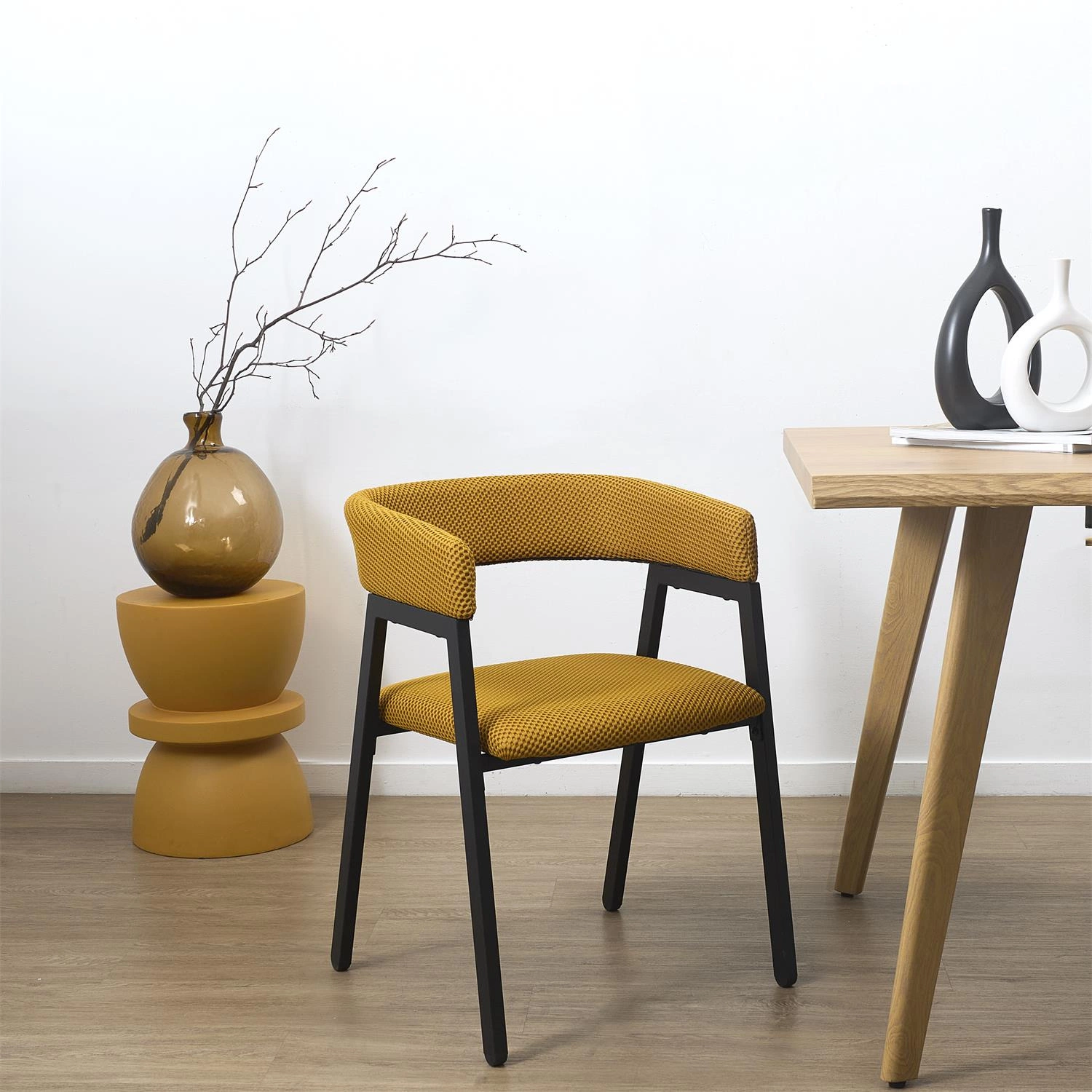 Krzesło Craft to połączenie wygodnego siedziska z podłokietnikami oraz wytrzymałej metalowej podstawy. Tkanina dystansowana na krześle sprawia wrażenie trójwymiarowej. Tkanina charakteryzuje się bardzo dobrą przepuszczalnością powietrza oraz minimalnym pochłanianiem wody i wilgoci, dzięki czemu krzesł sprawdzi się również w jadalni lub kuchni. Oparcie oraz podłokietniki krzesła tworzą spójną całośc i gwarantują wygodne oparcie podczas posiłku. Krzesło Craft wymaga łatwego montażu. Max. obciążenie krzesła 110kg. Krzesło nie sztapluje się.