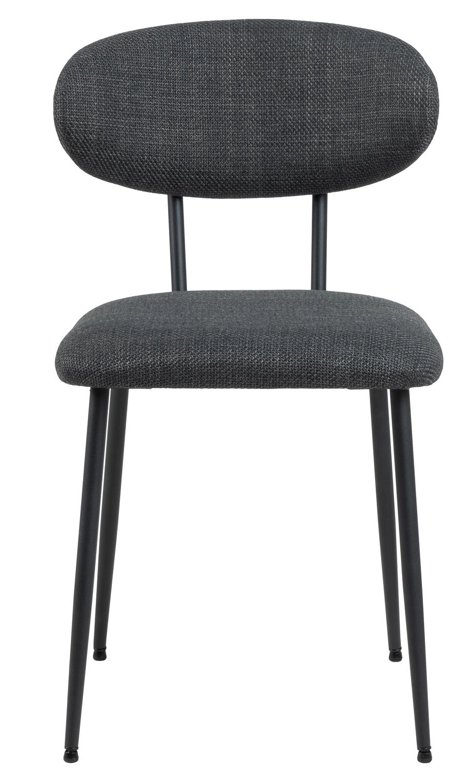 Krzesło do jadalni Denise to atrakcyjne wizualnie rozwiązanie, które idealnie pasuje do każdej nowoczesnej jadalni. Tapicerowane jest strukturalną tkaniną w pięknym szarym kolorze, która posiada dwukolorowy efekt, dodając mu unikalnego charakteru. Smukłe metalowe nogi malowane proszkowo na czarno stanowią interesujący kontrastowy element, który podkreśla elegancję krzesła.