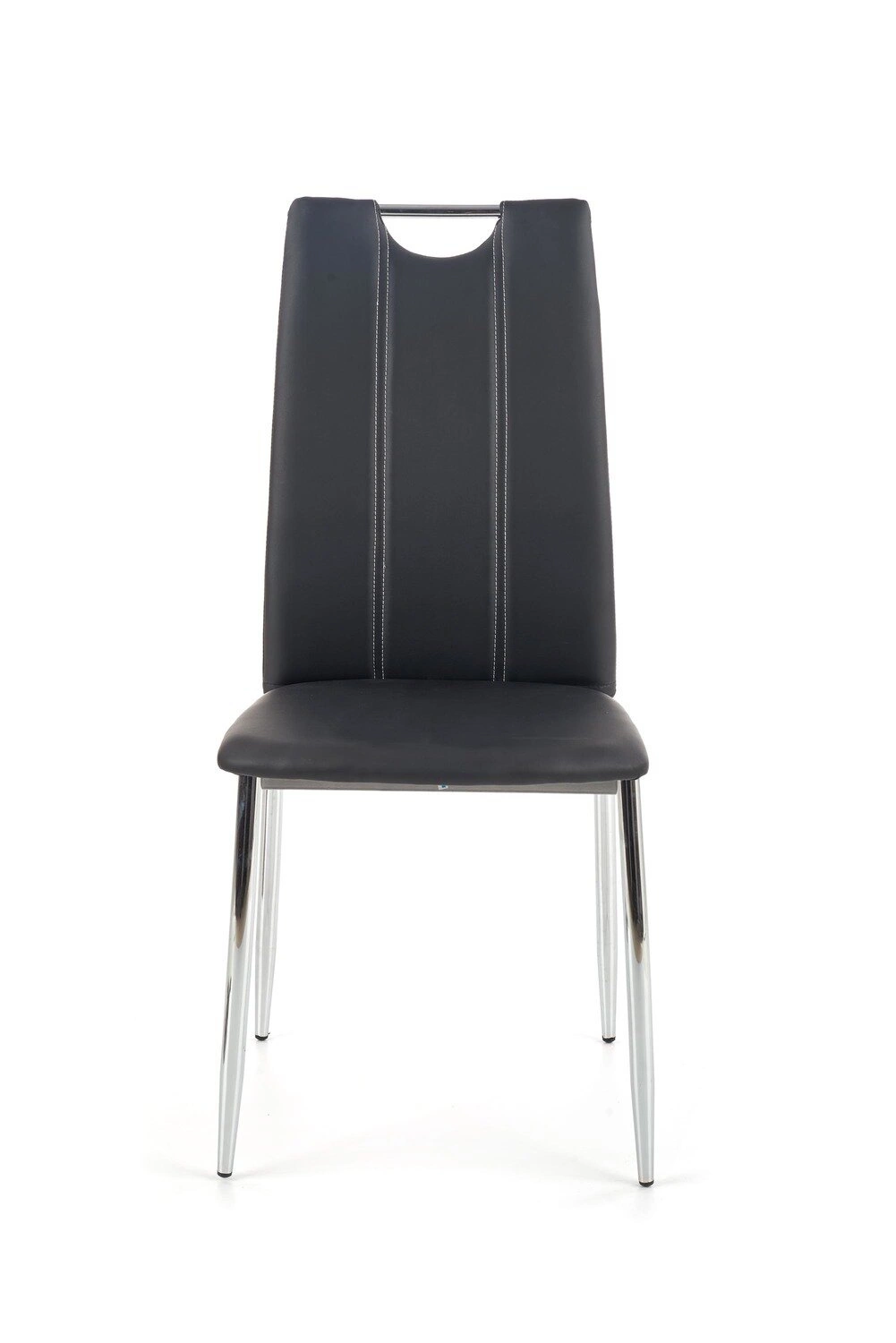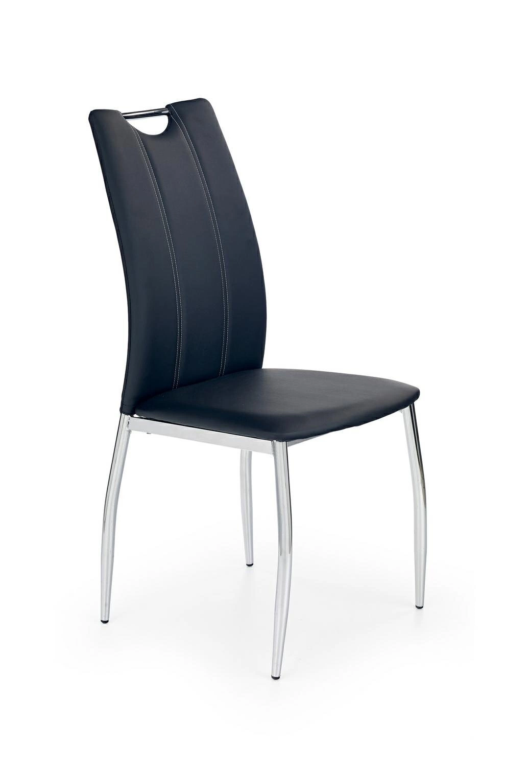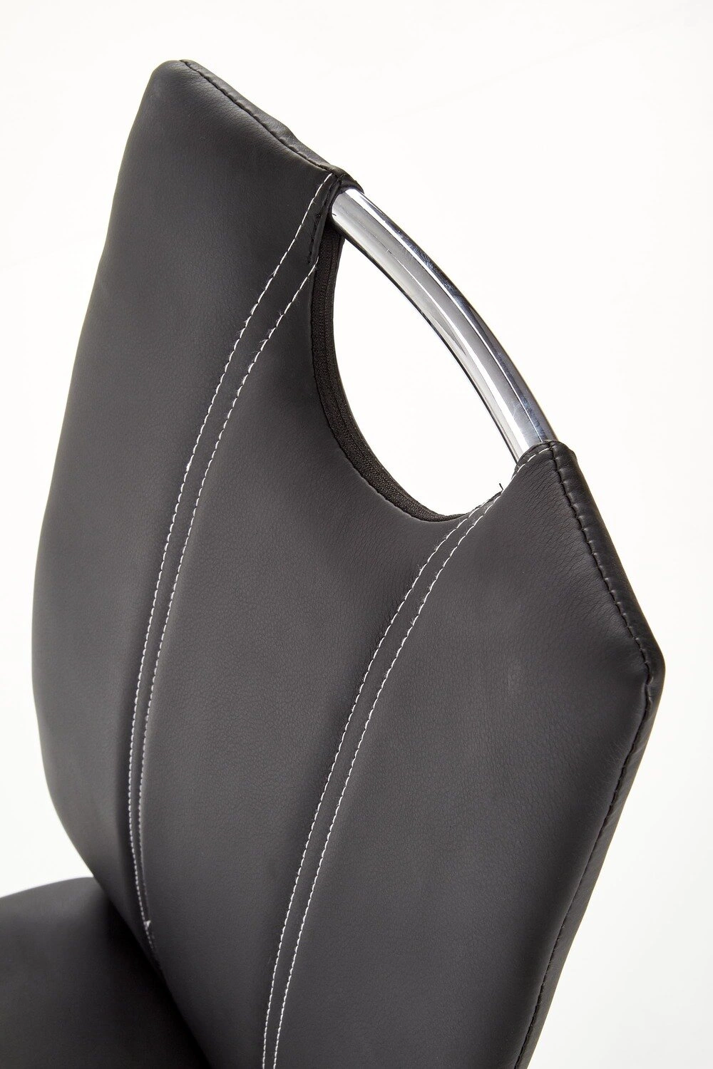 - Chromowana podstawa i czarna ekoskóra – elegancja oraz łatwość czyszczenia