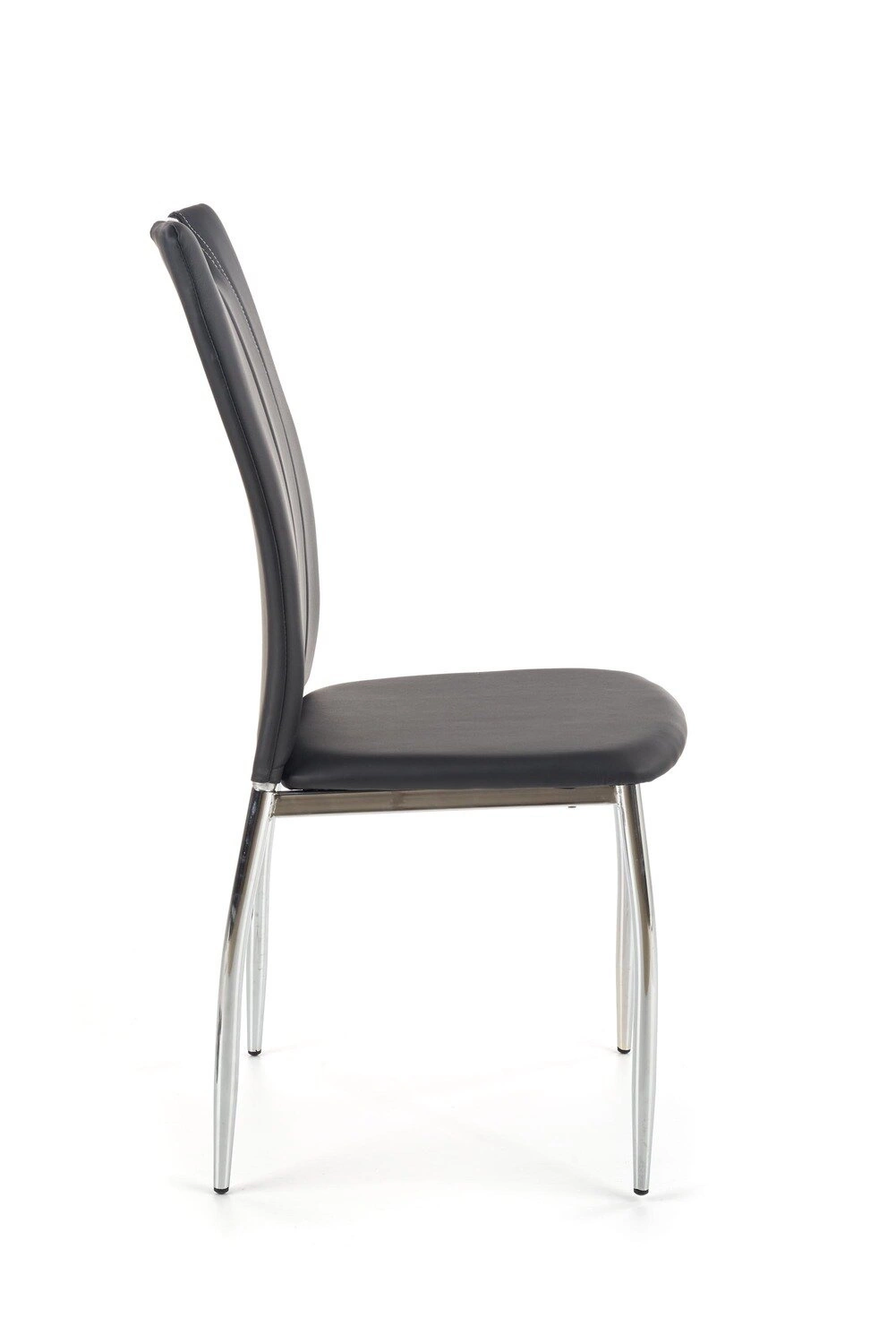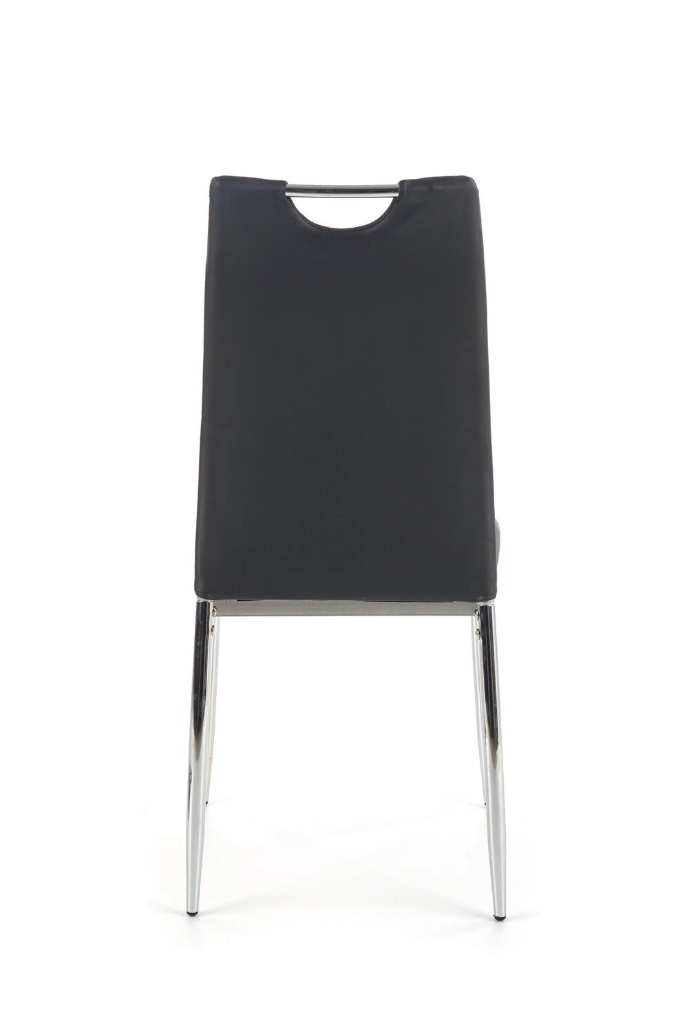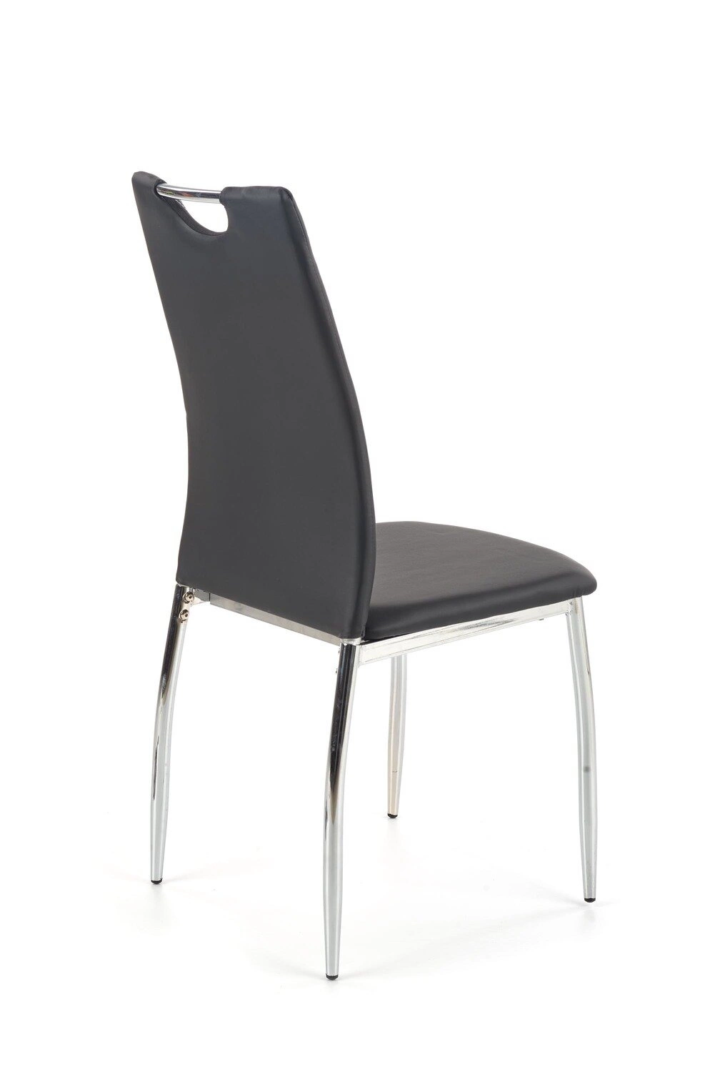 - Chromowana podstawa i czarna ekoskóra – elegancja oraz łatwość czyszczenia