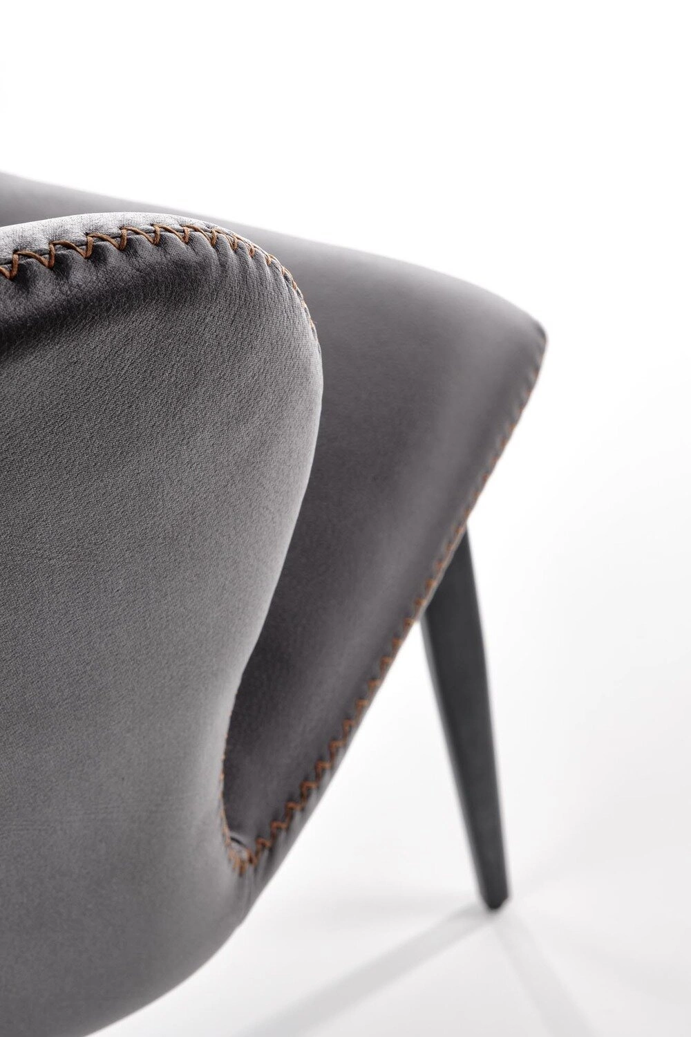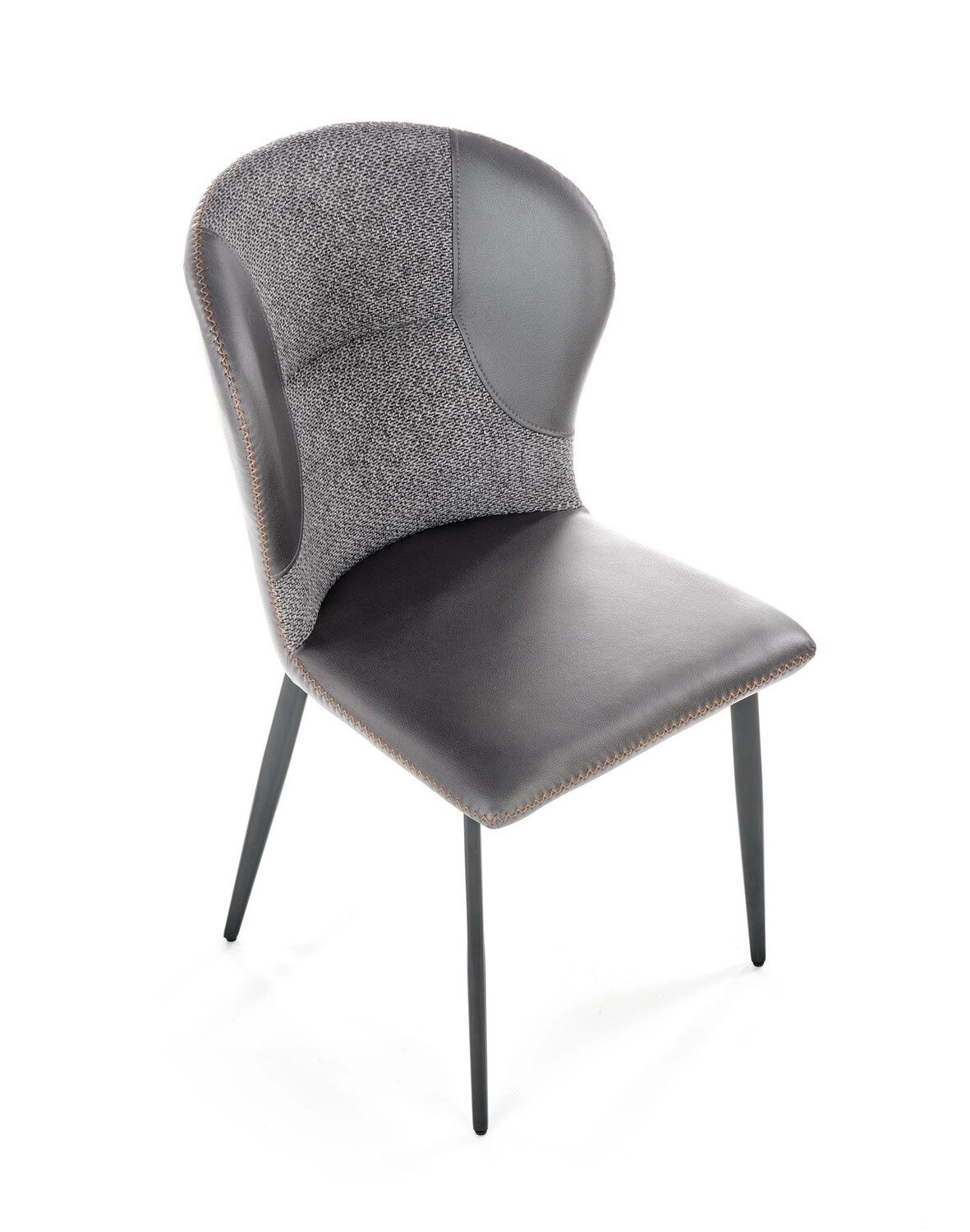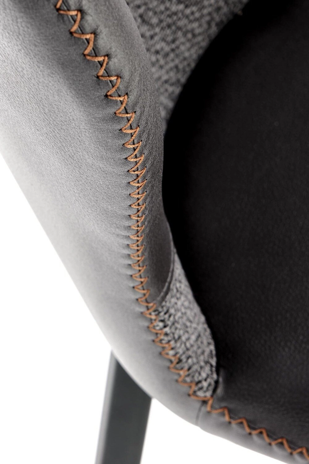 Ekoskóra i tkanina w ciemnym popielatym kolorze, ozdobione widocznymi przeszyciami, nadają mu niepowtarzalny charakter. Natomiast stalowa, proszkowo malowana podstawa w kolorze czarnym dodaje mu industrialnego uroku. Krzesło Josephin doskonale sprawdzi się w różnych pomieszczeniach. Jego nowoczesny styl idealnie wpisuje się w trendy wnętrzarskie, dodając im wyjątkowego charakteru. Może być doskonałym uzupełnieniem kuchni, jadalni, salonu czy biura. Dzięki swojej uniwersalności, krzesło Josephin doskonale komponuje się zarówno z nowoczesnymi, minimalistycznymi aranżacjami, jak i z bardziej klasycznymi wnętrzami.