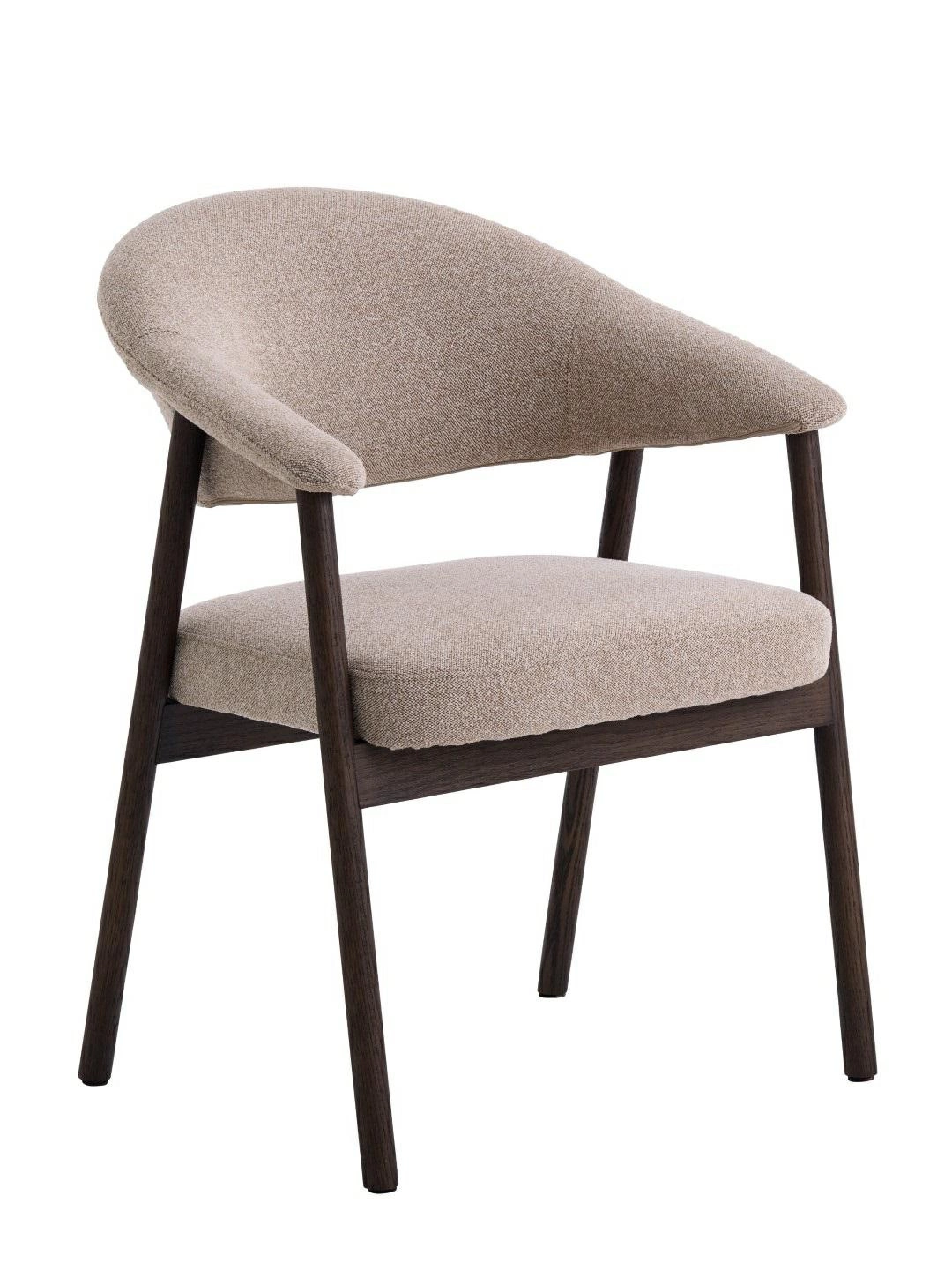 Solidna podstawa z drewna dębowego o ciemnym, brązowym wykończeniu nadaje krzesłu nowoczesny, a zarazem ponadczasowy charakter. Materiał ten jest znany z wytrzymałości i odporności na codzienne użytkowanie, co gwarantuje, że krzesło posłuży przez wiele sezonów. Dodatkowym atutem jest półmatowe wykończenie, które podkreśla naturalne usłojenie drewna, wprowadzając do wnętrza przytulność i elegancję.