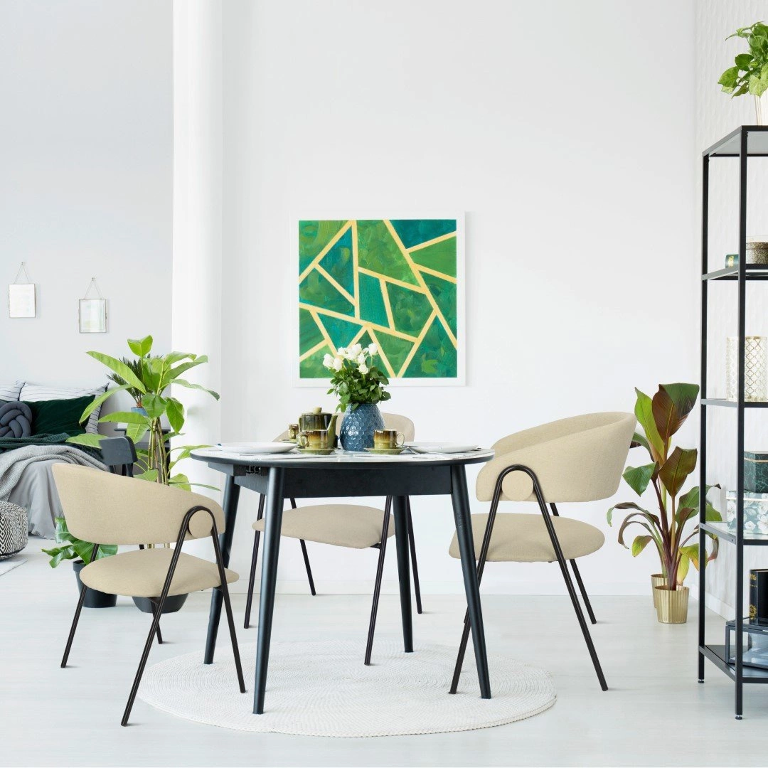 Możesz mieć pewność, że spędzanie czasu na tym krześle będzie czystą przyjemnością. Solidność i stabilność to kolejne atuty krzesła Larisa. Metalowe nogi, pomalowane proszkowo na czarny kolor, gwarantują trwałość i pewność podczas korzystania z krzesła. Nie musisz martwić się o jego wytrzymałość, nawet jeśli używasz go codziennie przez wiele lat. Wygoda to kluczowy element, na który zwracano uwagę podczas projektowania krzesła Larisa. Dzięki uzupełnieniu pianką tapicerską, krzesło doskonale dopasowuje się do ciała, zapewniając optymalne wsparcie dla pleców.