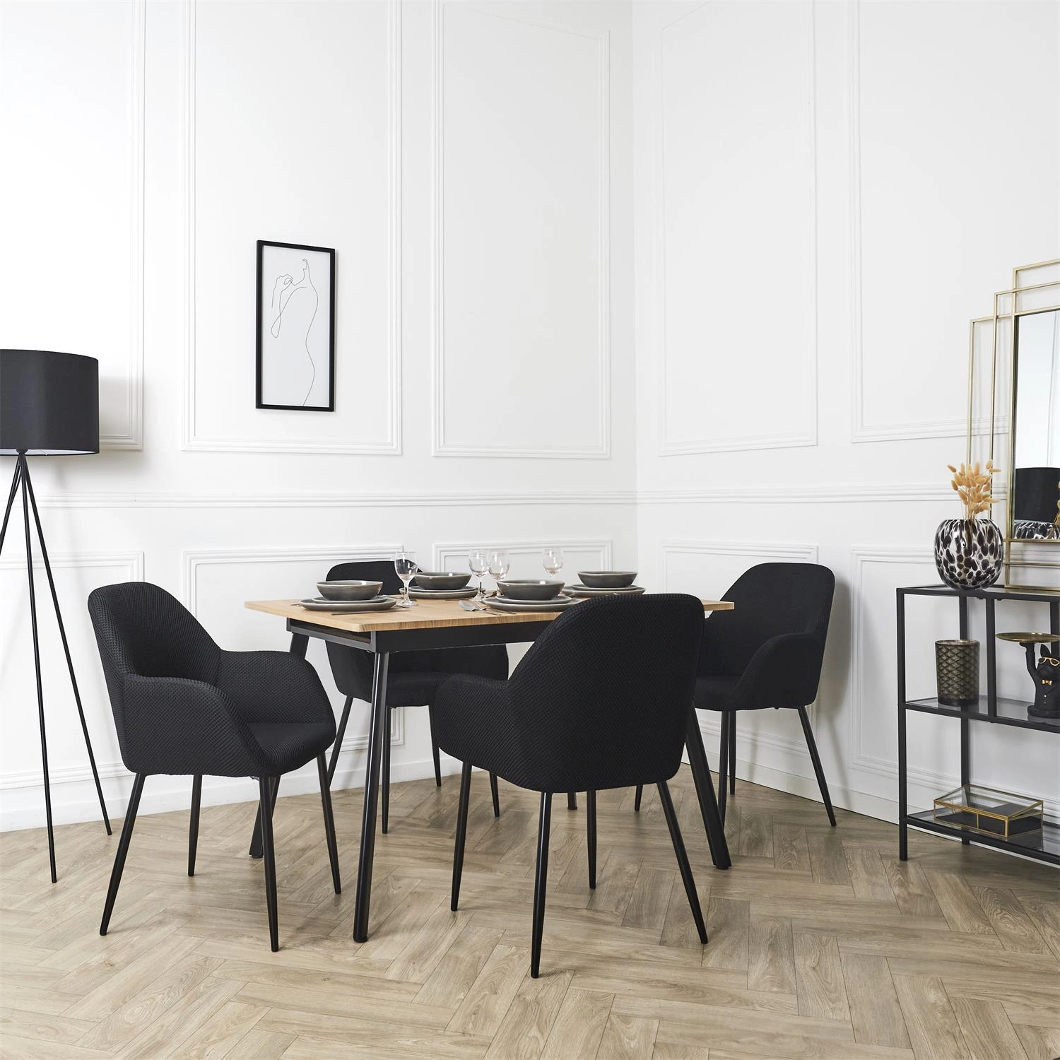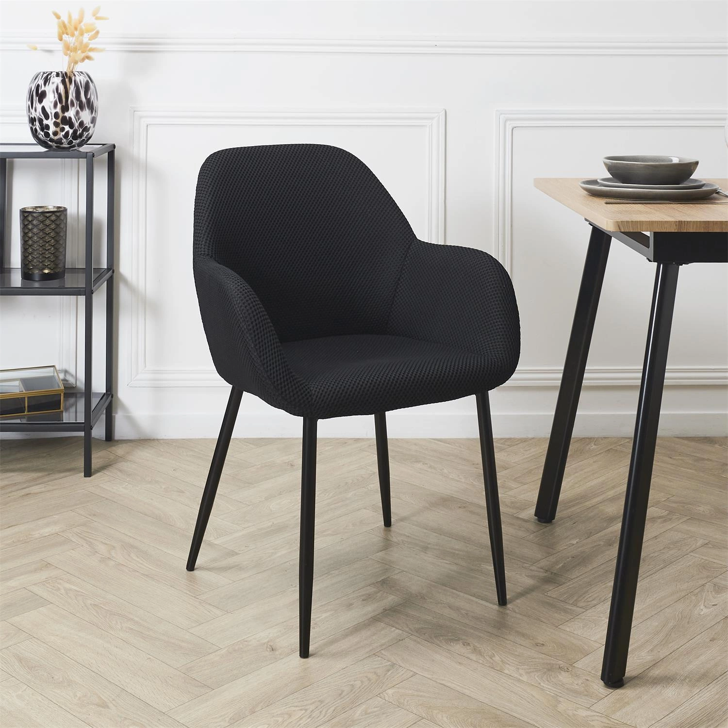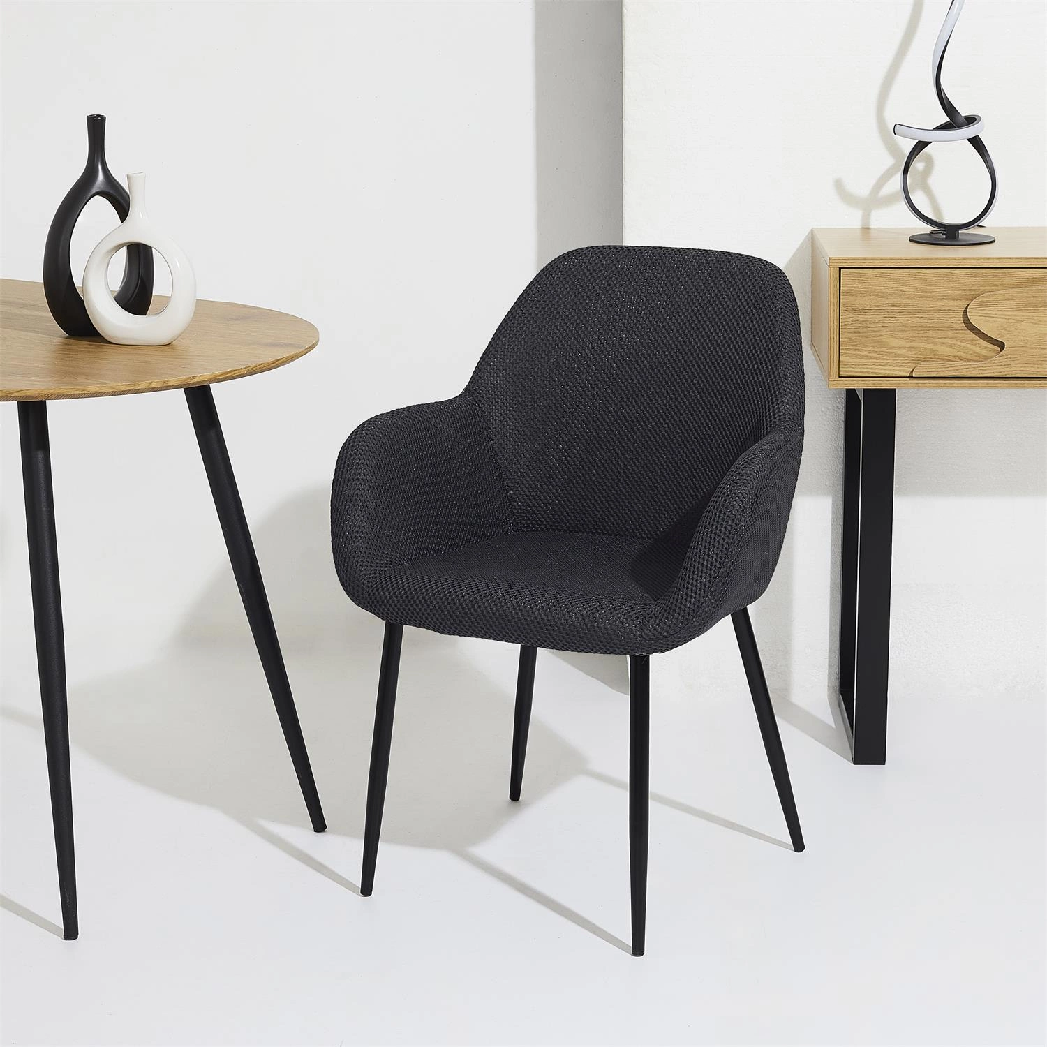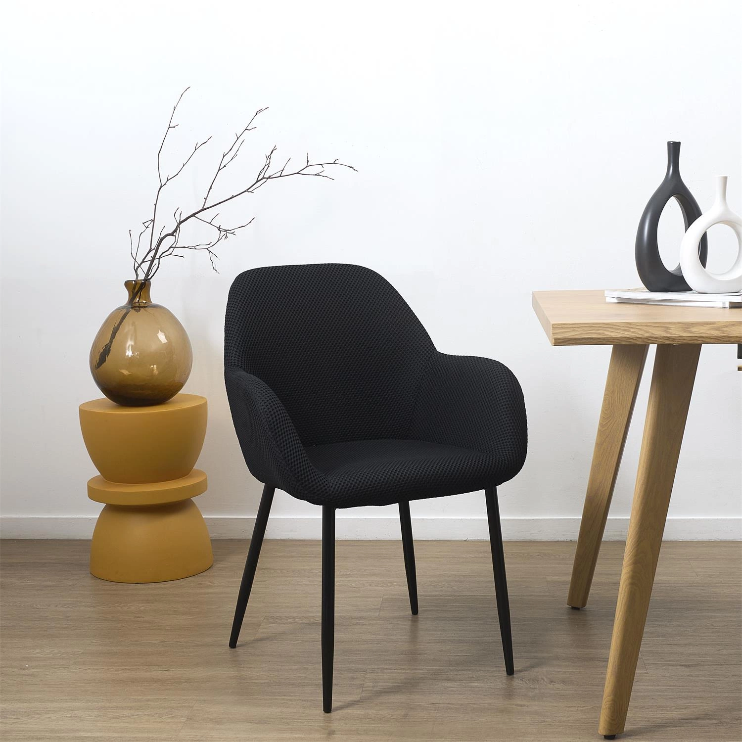Wyjątkowe czarne krzesło Lavia łączy w sobie komfort użytkowania i nowoczesny design. Wyprofilowane siedzisko, pokryte specjalną tkaniną dystansowaną, zapewnia nie tylko wygodę, ale także unikalny efekt trójwymiarowości. Metalowa podstawa gwarantuje stabilność i wytrzymałość, a wysokie nogi umożliwiają swobodne przemieszczanie się robota sprzątającego. Tkanina o gramaturze 210g/m2 jest niezwykle przepuszczalna dla powietrza i minimalnie pochłania wodę, co sprawia, że krzesło idealnie sprawdzi się w kuchni czy jadalni.