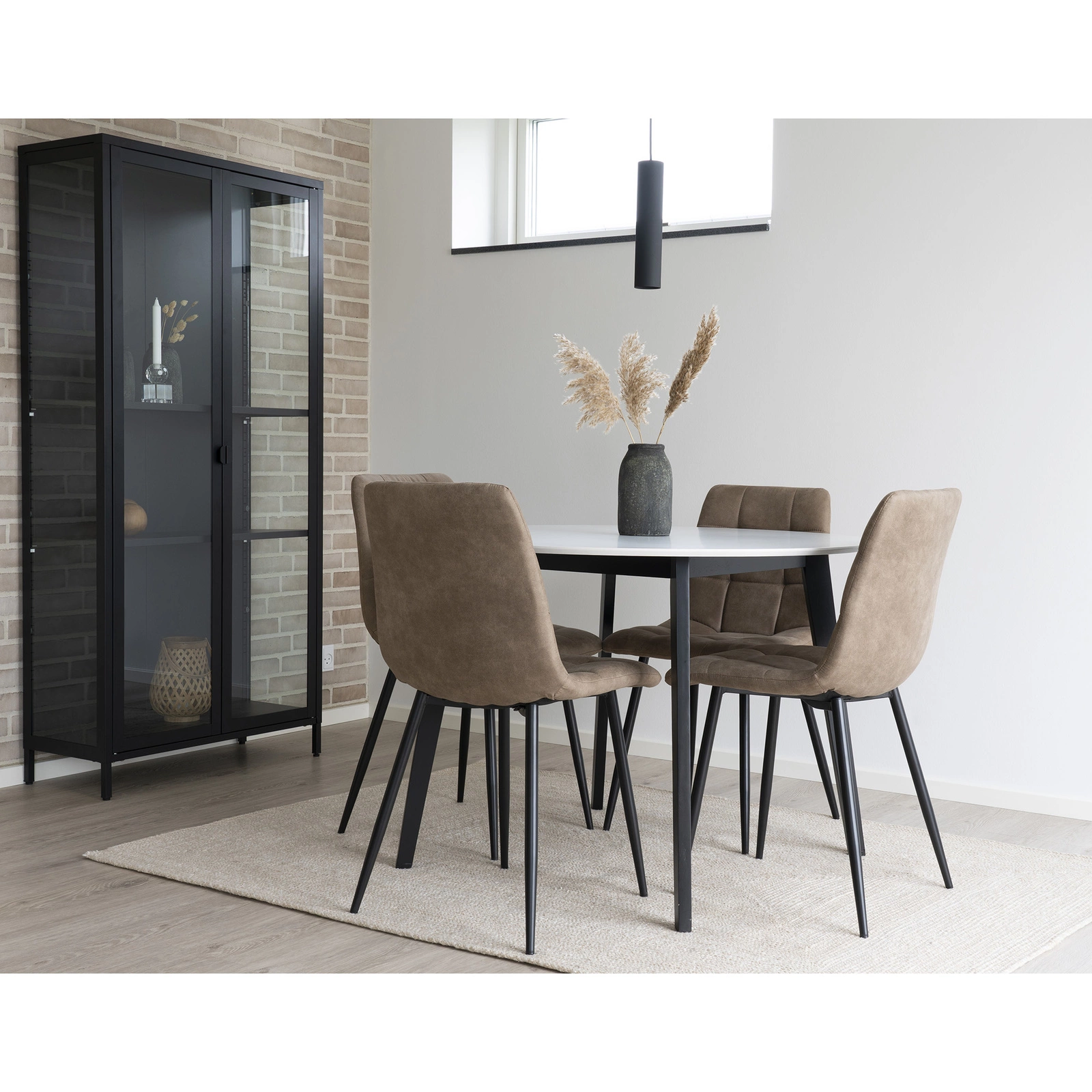 Barwa siedziska to jasny brąz, natomiast podstawa jest czarna. Taka kolorystyka sprawia, że krzesło Middelfart stanie się stylowym dodatkiem do każdego wnętrza, niezależnie od dominującej kolorystyki.