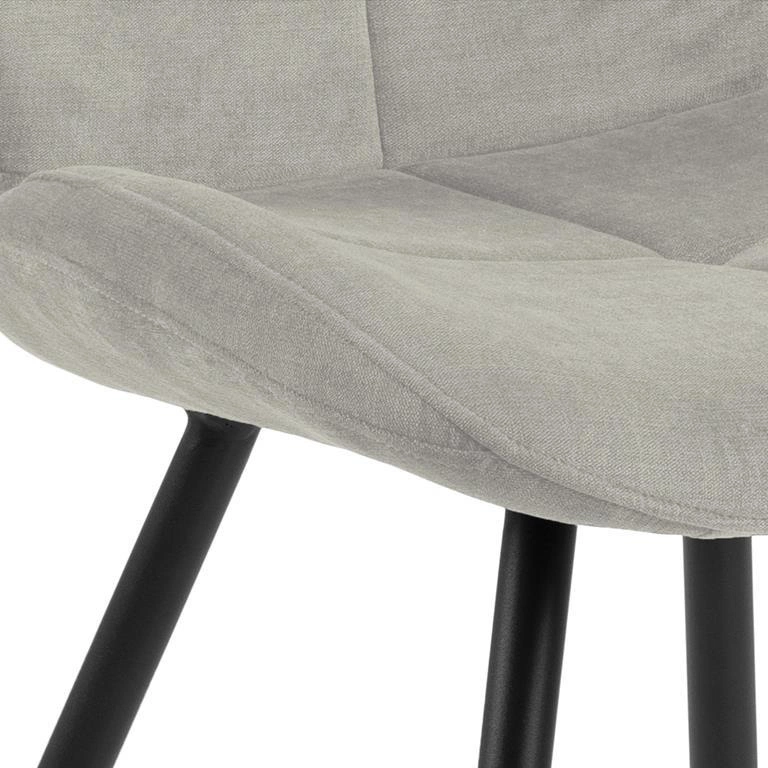 Krzesło Petri to projekt o nowoczesnym designie, idealny dla osób ceniących nietypowe wzornictwo. Charakterystycznym elementem tego modelu jest jego nieoczywiste oparcie i siedzisko, które odbiega od klasycznego kształtu, a przypomina raczej figurę sześciokąta. To modny zabieg, który wpasowuje się w trendy związane z geometrią wnętrz. Siedzisko i oparcie krzesła wypełnione zostało pianką poliuretanową, która gwarantuje niezwykłą wygodę i komfort. Krzesło tapicerowane jest tkaniną Holly fabric sand 4. Uwagę zwraca ciekawy, nieco ścięty kształt oparcia oraz dekoracyjne przeszycia i pikowanie. Podstawę krzesła stanowią cztery smukłe, delikatnie rozchodzące się na boki nogi z malowanego proszkowo metalu w kolorze czarnym. Krzesło Petri to propozycja idealna do domowej jadalni oraz przestrzeni komercyjnych tj. restauracje.