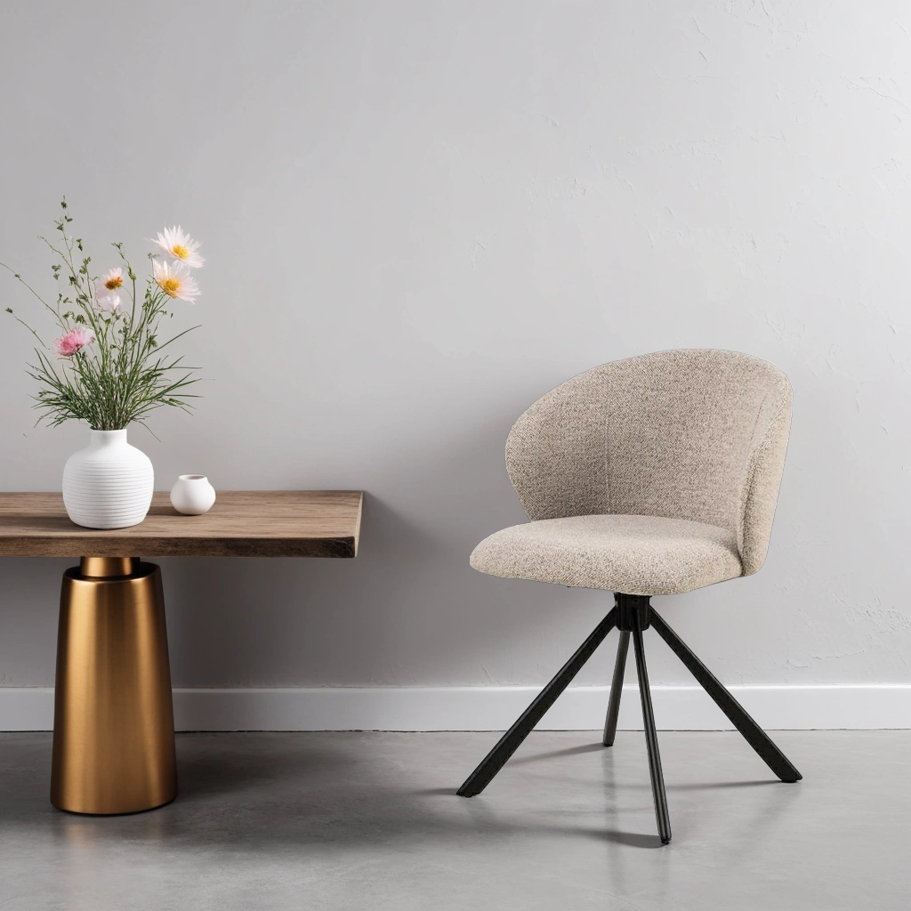 Krzesło Pippa Monza to nowoczesny klasyk. Posiada prostokątne siedzisko tapicerowane beżową tkaniną bouclé z subtelnymi szwami. Czarna metalowa podstawa z funkcją obrotową dodaje elegancji temu stylowemu krzesłu.