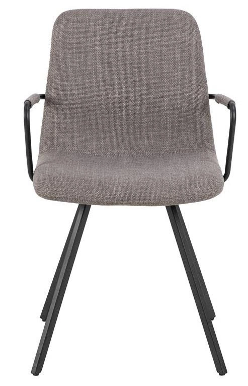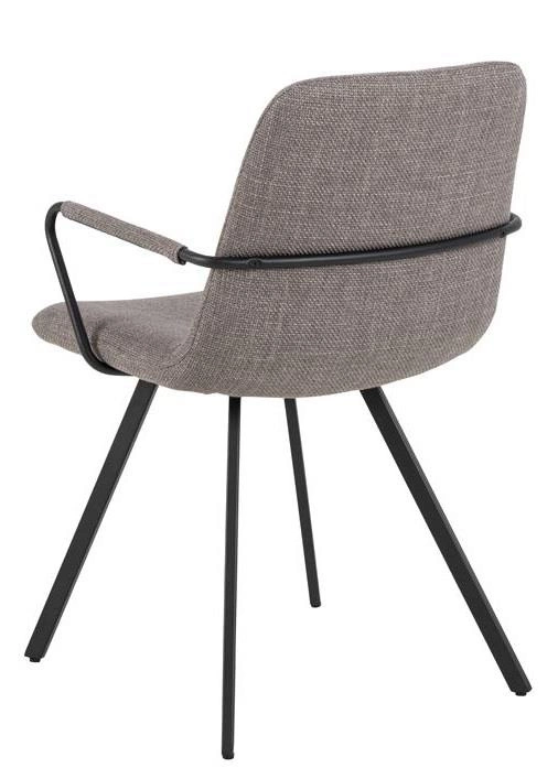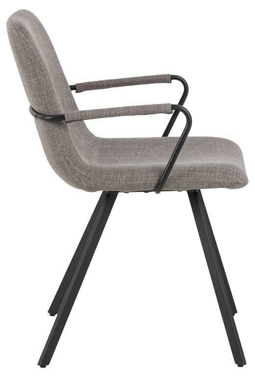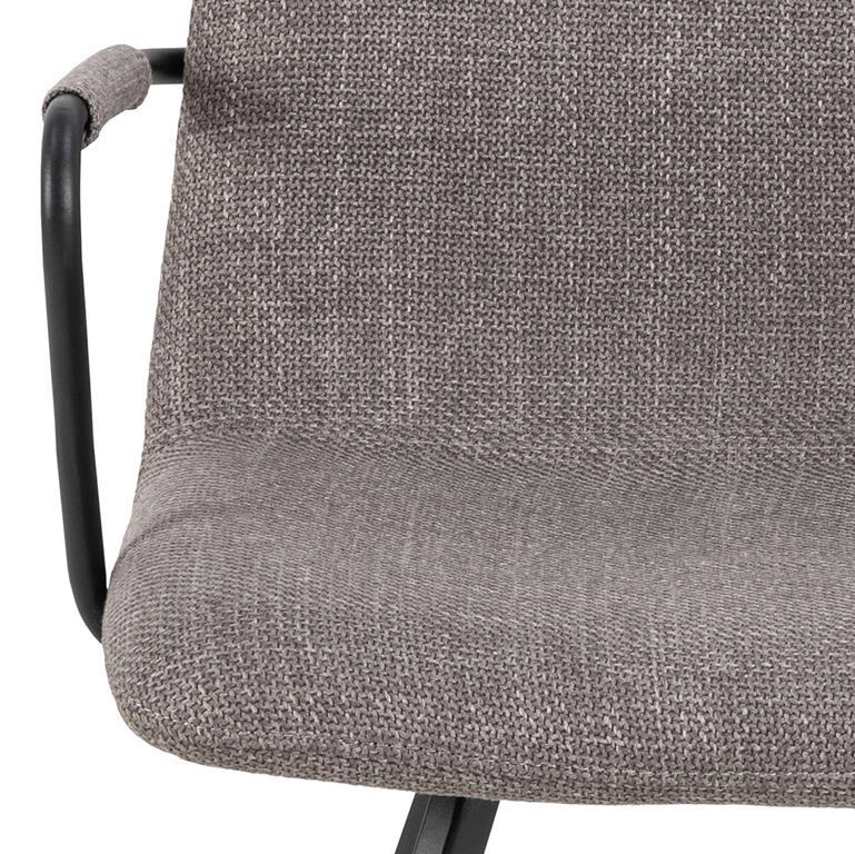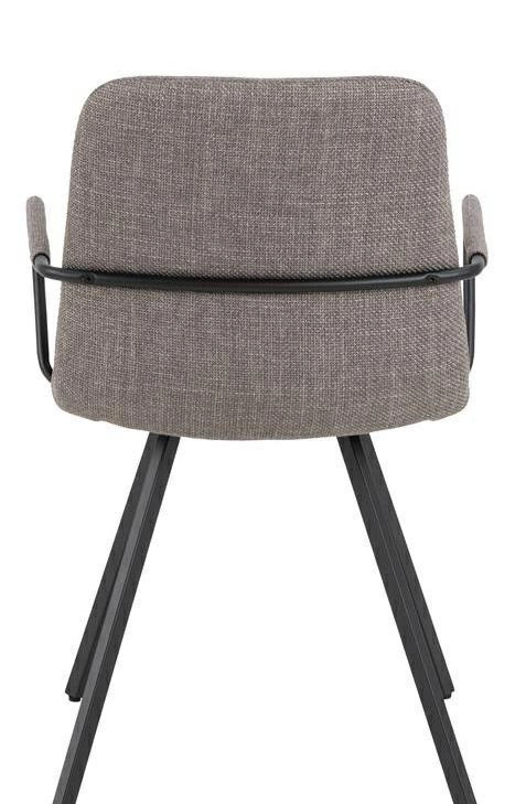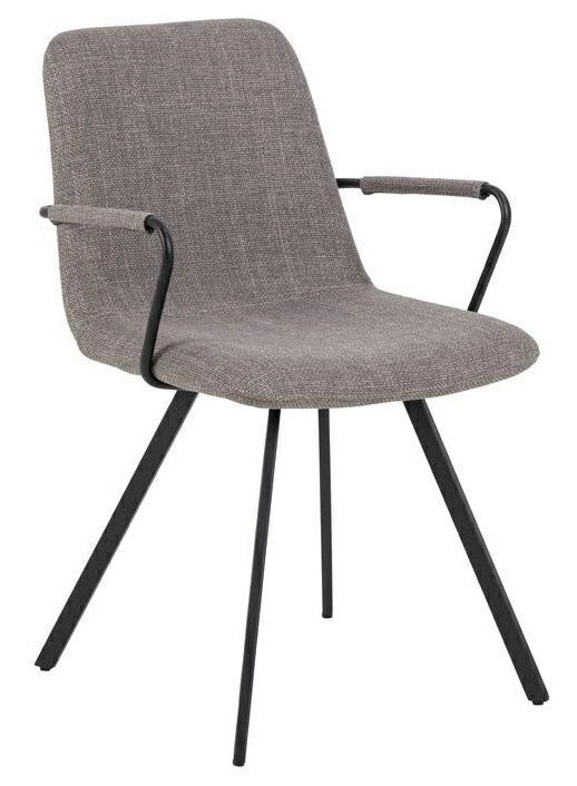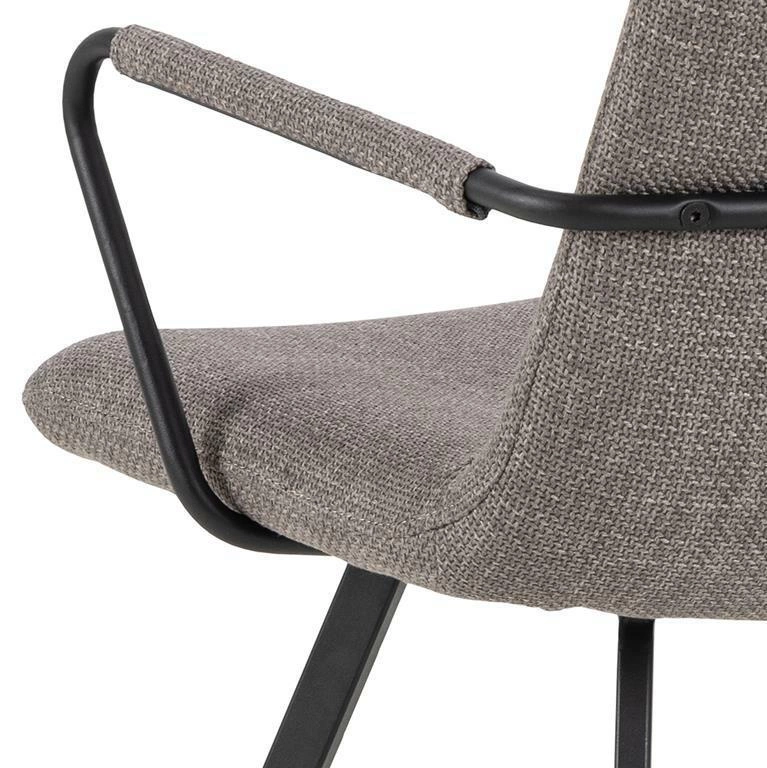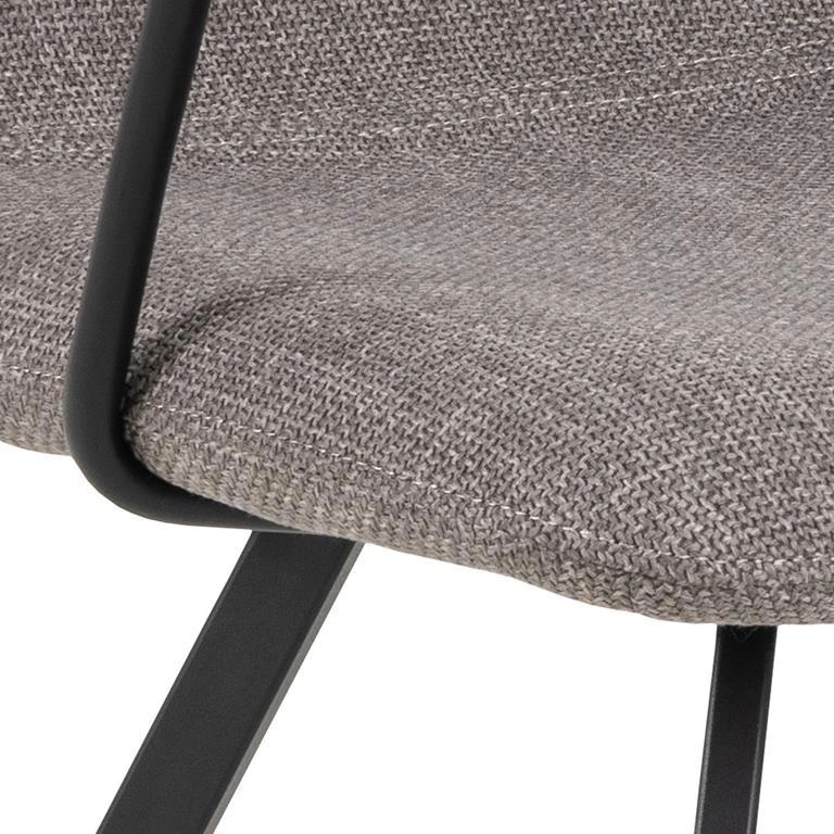 Siedzisko pokryte jest strukturalną i miękką tkaniną o delikatnym, ciemnoszarym odcieniu. Ta wysokiej jakości tapicerka nadaje krzesłu wyjątkowego charakteru i sprawia, że siedzenie jest przyjemne i komfortowe. Czarne, malowane proszkowo metalowe nogi stanowią solidną i stabilną podstawę krzesła. Ich minimalistyczny design doskonale komponuje się z nowoczesnym wystrojem wnętrza. Mebel został wykonany z trwałych materiałów, co gwarantuje jego długotrwałą trwałość i wytrzymałość. Jest to inwestycja, która będzie cieszyć oka przez wiele lat.