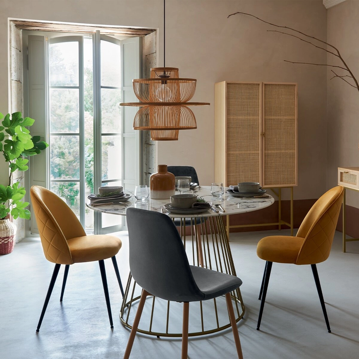 Krzesło Slano od Atmosphera to idealne połączenie elegancji i funkcjonalności, które doskonale sprawdzi się zarówno przy stole jadalnym, jak i w pokoju gościnnym. Tapicerowane krzesło Slano wnosi do wnętrza nutę luksusu i wyrafinowania.