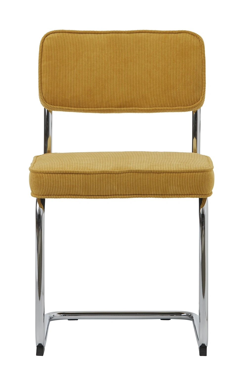 Krzesło tapicerowane Tepper marki UNIQUE Furniture A/S to nowoczesny mebel do jadalni i kuchni, który wyróżnia się żółtym siedziskiem z miękkiego sztruksu oraz designerską podstawą na płozach ze stali chromowanej. Komfortowe siedzisko o wysokości 51 cm i szerokości 50 cm zapewnia wygodę podczas codziennych posiłków, a modny kolor wnosi do wnętrza energię i świeżość. Dzięki połączeniu wyjątkowej tkaniny, ergonomicznego kształtu i solidnego wykonania, model Tepper idealnie wpisuje się w potrzeby nowoczesnych domów.