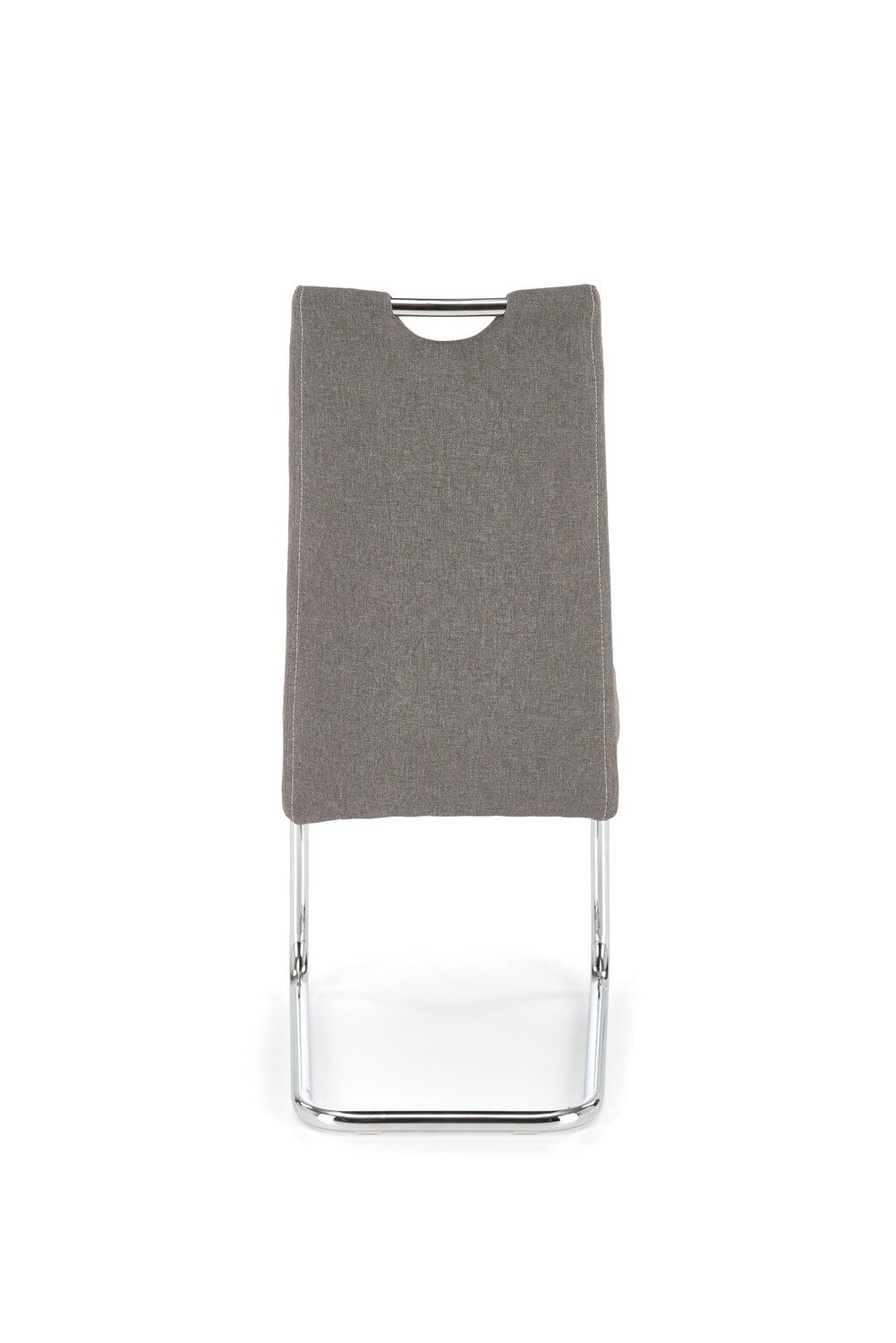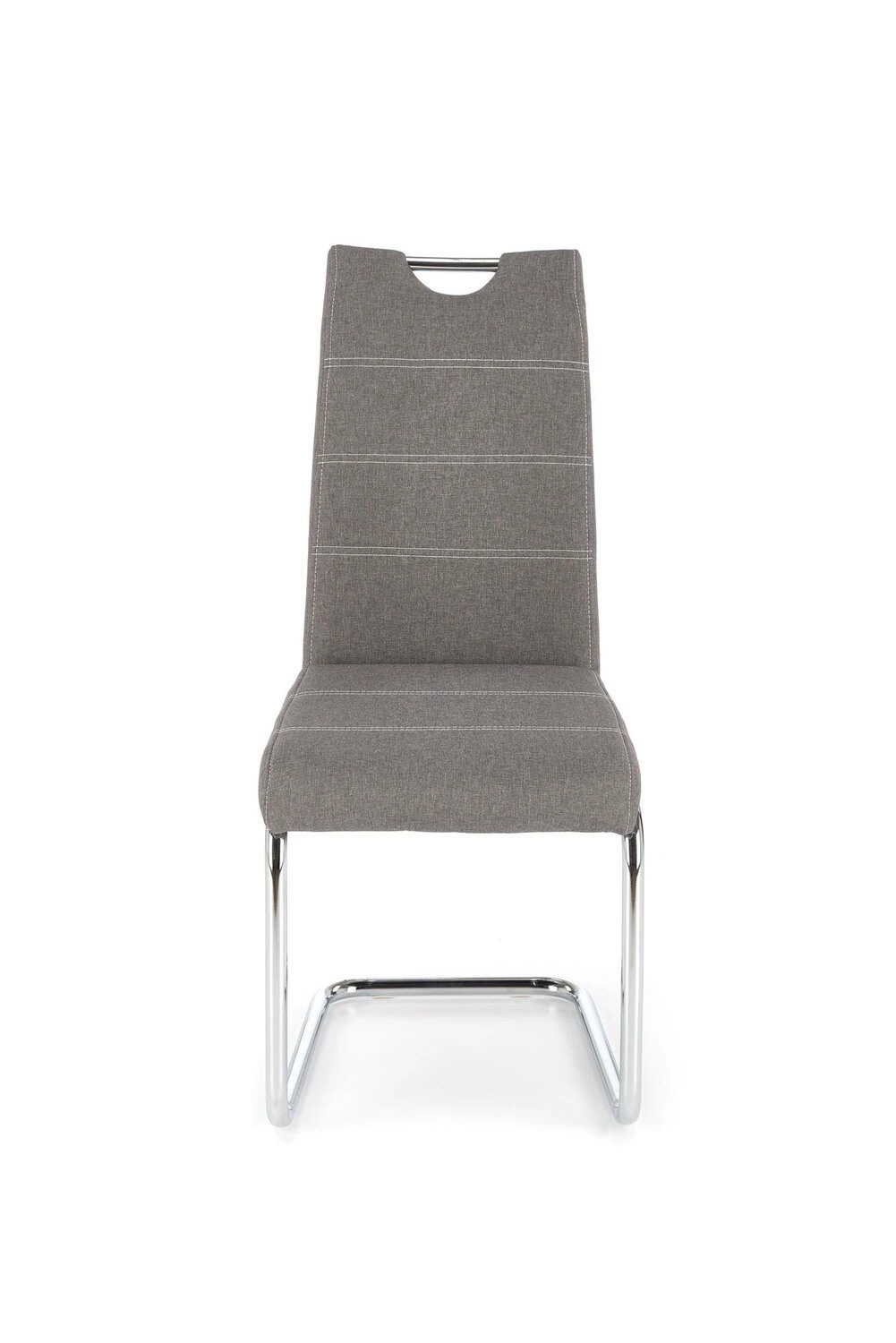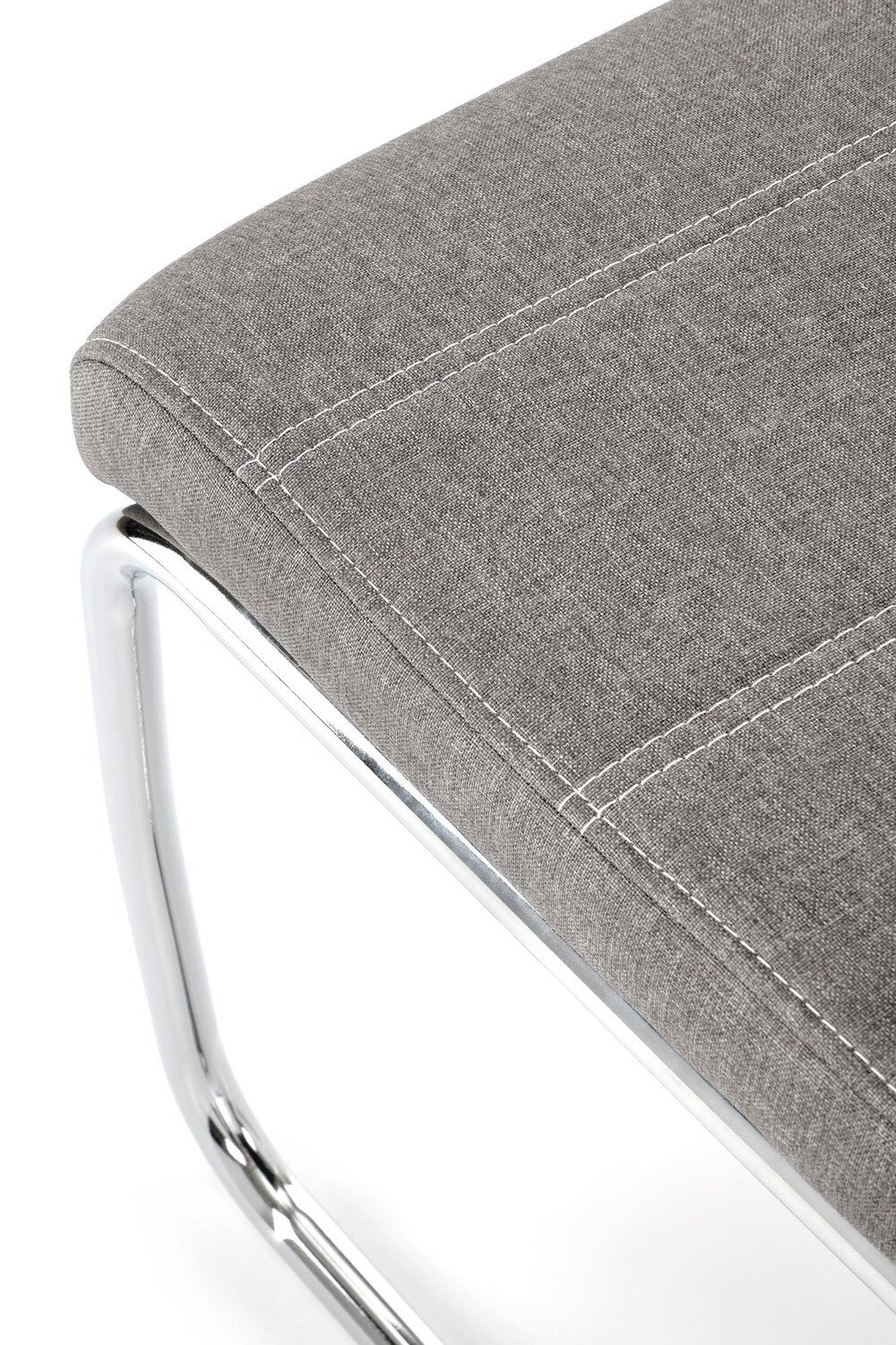 Popielaty kolor krzesła sprawia, że idealnie wpasuje się w różne aranżacje wnętrz, dodając im subtelności i elegancji. Bez wątpienia będzie stanowić doskonałe uzupełnienie w każdym wnętrzu od nowoczesnych po te klasyczne. Tapicerowane siedzisko krzesła mieści się na chromowanych płozach, co nie tylko nadaje mu unikalny wygląd, ale także zapewnia stabilność i wygodę użytkowania. Dzięki temu jest idealne zarówno do jadalni, jak i do biura czy salonu.