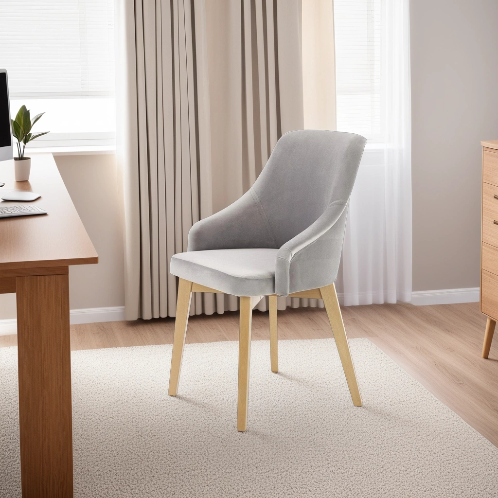 Krzesło Alain - Drewniane krzesło tapicerowane | Intesi Dodaj odrobinę klasycznego stylu do swojego domu dzięki krzesłu Alain od Intesi. Wykonane z ramy o prostych nogach z naturalnego drewna i tapicerowane aksamitną tkaniną, to drewniane tapicerowane krzesło z pewnością będzie przyciągającym wzrok dodatkiem do każdego pomieszczenia. Przedstawiamy wspaniałe krzesło Alain, w którym klasyka spotyka się ze współczesnością w najbardziej urzekający sposób. Te piękno jest uosobieniem uroku i wyrafinowania, gwarantując, że zwróci uwagę i skradnie serca. Dzięki prostym nogom wykonanym z najlepszego drewna o prostokątnym przekroju, krzesło Alain emanuje ponadczasową elegancją. Krzesło Alain to kunszt w najlepszym wydaniu, skrupulatnie zaprojektowany, aby przenieść Twoje wrażenia z siedzenia na nowy poziom. Jego komfort nie zna granic dzięki welwetowej tapicerce z aksamitu, która otula niczym ciepły uścisk. Zanurz się w czystej błogości, relaksując się po długim dniu, czując się jak członek rodziny królewskiej na swoim tronie. Podczas gdy niektóre krzesła mogą iść na kompromis między stylem a praktycznością, krzesło Alain z wdziękiem tańczy między nimi. Dzięki naturalnemu dębowemu kolorowi podstawy, to arcydzieło bez wysiłku wtapia się w każdą przestrzeń z łatwością i wdziękiem. Niezależnie od tego, czy Twój dom ma tradycyjny wystrój wnętrz, czy też stawia na nowoczesną estetykę, krzesło Alain jest brakującym elementem, który dopełni układankę. O tym warto pamiętać! Wysokiej jakości konstrukcja i materiały zapewniają długotrwałą wytrzymałość. Unikalny, klasyczny design podkreśla wystrój każdego pomieszczenia. Wystarczająco wszechstronne, aby pracować w różnych przestrzeniach, od salonów po biblioteki. Aksamitna tapicerka z tkaniny zapewnia komfort siedzenia.