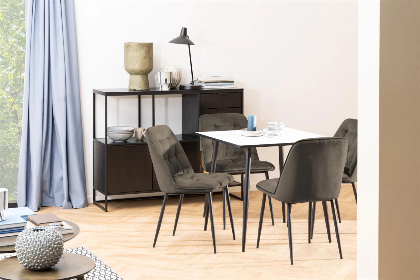 Krzesło Brooke to połączenie ponadczasowych materiałów z funkcjonalną formą. Posiada idealnie wyprofilowane siedzisko obite pianką tapicerską. Pikowane krzesło będzie miejscem, w którym będziesz w stanie wygodnie spędzić długie godziny. Jego podstawa stworzona z solidnych nóg wykonanych z metalu malowanego proszkowo na kolor czarny. Welwetowe krzesło z czarnymi nogami będzie świetnym rozwiązaniem do salonu w stylu skandynawskim, a także doskonale posłuży jako krzesło do toaletki w sypialni glamour. Może także perfekcyjnie podkreślić charakter poczekalni lub hotelowego lobby.