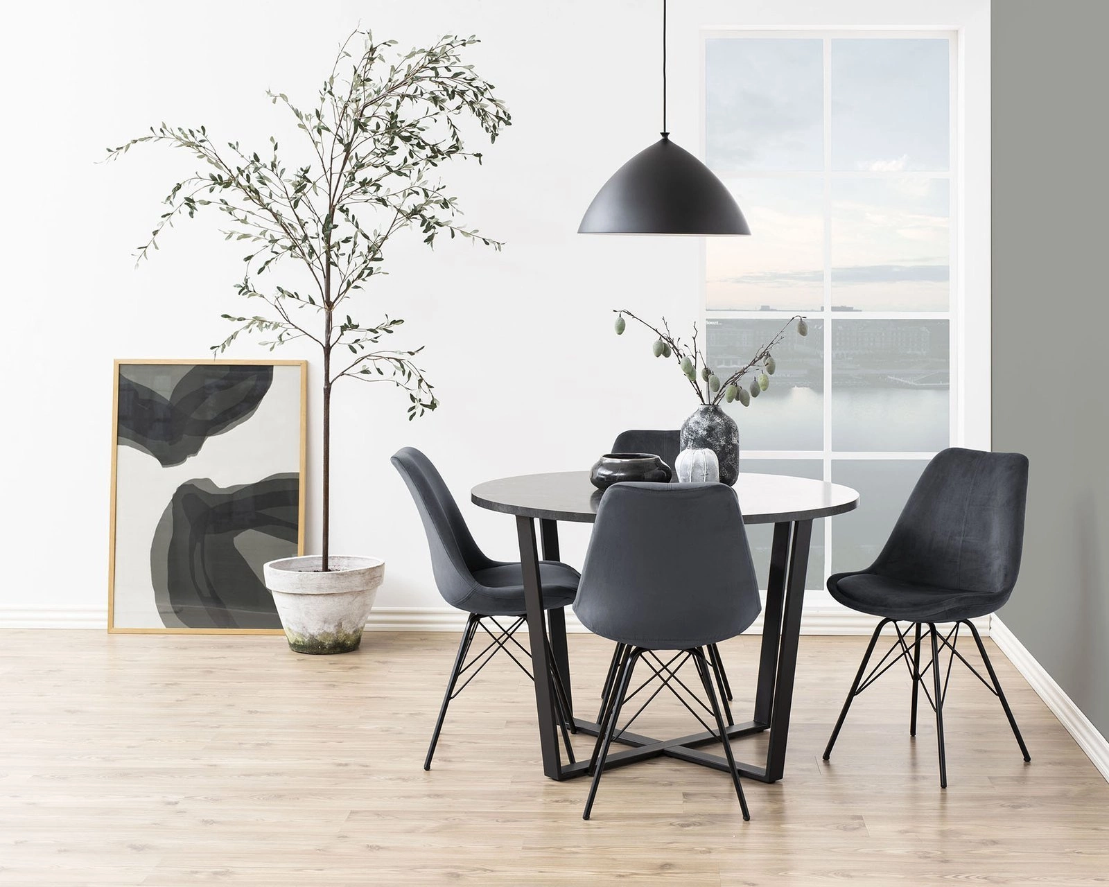 Szukasz rozwiązań, które łączą w sobie funkcjonalność i elegancję? Krzesło Eris VIC to mebel, który wyróżnia wyjątkowa lekkość i delikatność formy. Jego profilowane siedzisko posiada subtelnie zaokrąglone krawędzie, które pozwalają na wysoki komfort użytkowania. Dzięki temu bez problemu będziesz mógł spędzić przy nim długie godziny przy rodzinnym stole lub podczas pracy przy biurku. Stworzona z polipropylenu forma pokryta została tkaniną VIC Dark Grey 28, która jest niezwykle miła w dotyku, a dodatkowo przez fakturę zbliżoną do weluru przepięknie odbija światło. Subtelność tego wygodnego krzesła podkreśla metalowa podstawa malowana proszkowo w odcieniu eleganckiej czerni. Pomiędzy 4 nogami znajdują się dodatkowe wsporniki, które sprawiają, że konstrukcja jest stabilna i wytrzymała, przez co może unieść do 120 kg.