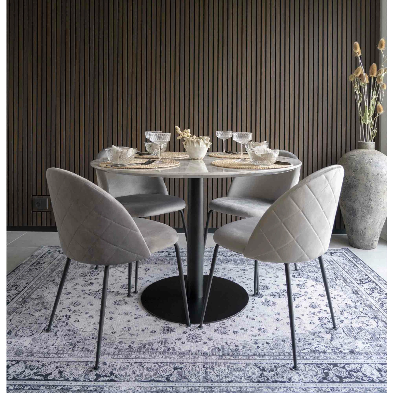 Krzesło Geneve szare VIC/czarne to połączenie wytrzymałej stali i miękkiego weluru. Cztery nogi krzesła wykonane są ze stali, co zapewnia stabilność i wytrzymałość, a maksymalne obciążenie wynosi aż 110 kg. Siedzisko z kolei pokryte jest welurową tkaniną, która jest nie tylko elegancka, ale także wygodna i miękka.