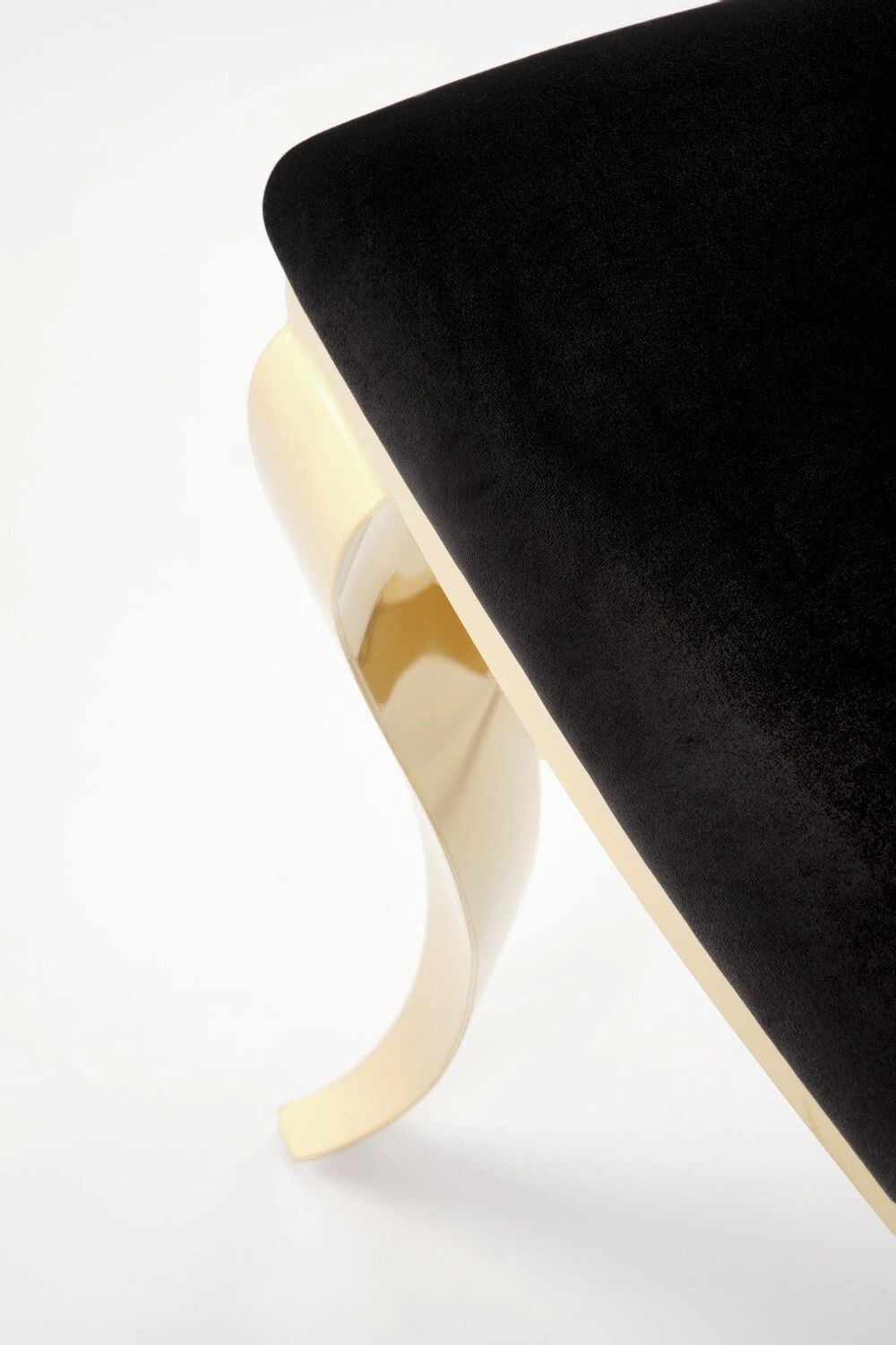 - Krzesło Royale wykonane jest z tkaniny welwet BLUVEL oraz stali nierdzewnej w kolorze czarnym i złotym