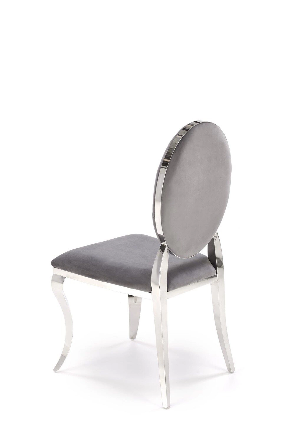 Przedstawiamy wyjątkowe krzesło Royale w odcieniu szarym i srebrnym, które swoim stylem nawiązuje do tradycji ludwikowskiej, ale z nowoczesnym twistem. Wykonane z miękkiej i przyjemnej w dotyku tkaniny welwetowej, gwarantuje komfort podczas długich spotkań przy stole. Szare siedzisko kontrastuje z srebrnymi nogami, co nadaje krzesłu eleganckiego i glamour looku. Krzesło idealnie wpasuje się w każdą jadalnię, salon, ale także restaurację czy kawiarnię.
