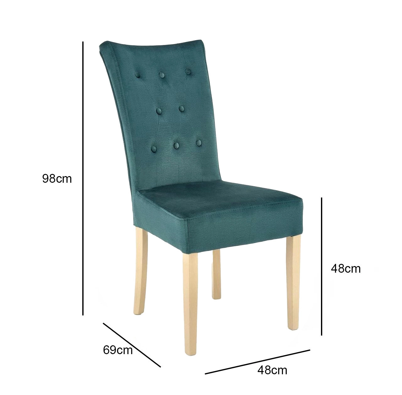 Krzesło tapicerowane Xsavier marki Intesi to połączenie nowoczesnego stylu i funkcjonalności, które idealnie dopełni wystrój jadalni lub salonu. Model wykonano z aksamitnej tkaniny welurowej w głębokim, ciemnozielonym kolorze, a jego stabilną podstawę stanowią cztery nogi z litego drewna bukowego o naturalnym wykończeniu. Wysokie oparcie, wygodne siedzisko o wysokości 48 cm oraz proporcje 98×48×69 cm sprawiają, że krzesło jest zarówno eleganckie, jak i komfortowe na co dzień.