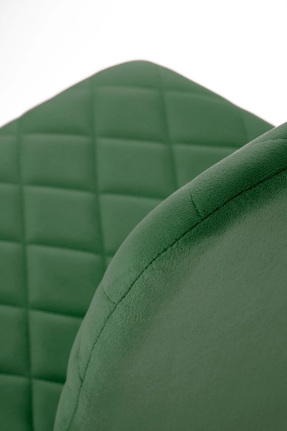 Krzesło Uferyn Velvet w kolorze ciemnej zieleni to elegancki i uniwersalny mebel, który doskonale wkomponuje się w nowoczesne wnętrza. Wykonane z wysokiej jakości tkaniny velvet, oferuje nie tylko estetyczny wygląd, ale także komfort użytkowania. Pikowana powierzchnia krzesła dodaje mu charakteru, sprawiając, że staje się wyjątkowym elementem wystroju. Stelaż krzesła wykonany jest z malowanej proszkowo stali, co zapewnia trwałość i stabilność. Krzesło posiada cztery szeroko rozstawione, proste nogi o okrągłym profilu, które zapewniają solidne oparcie.