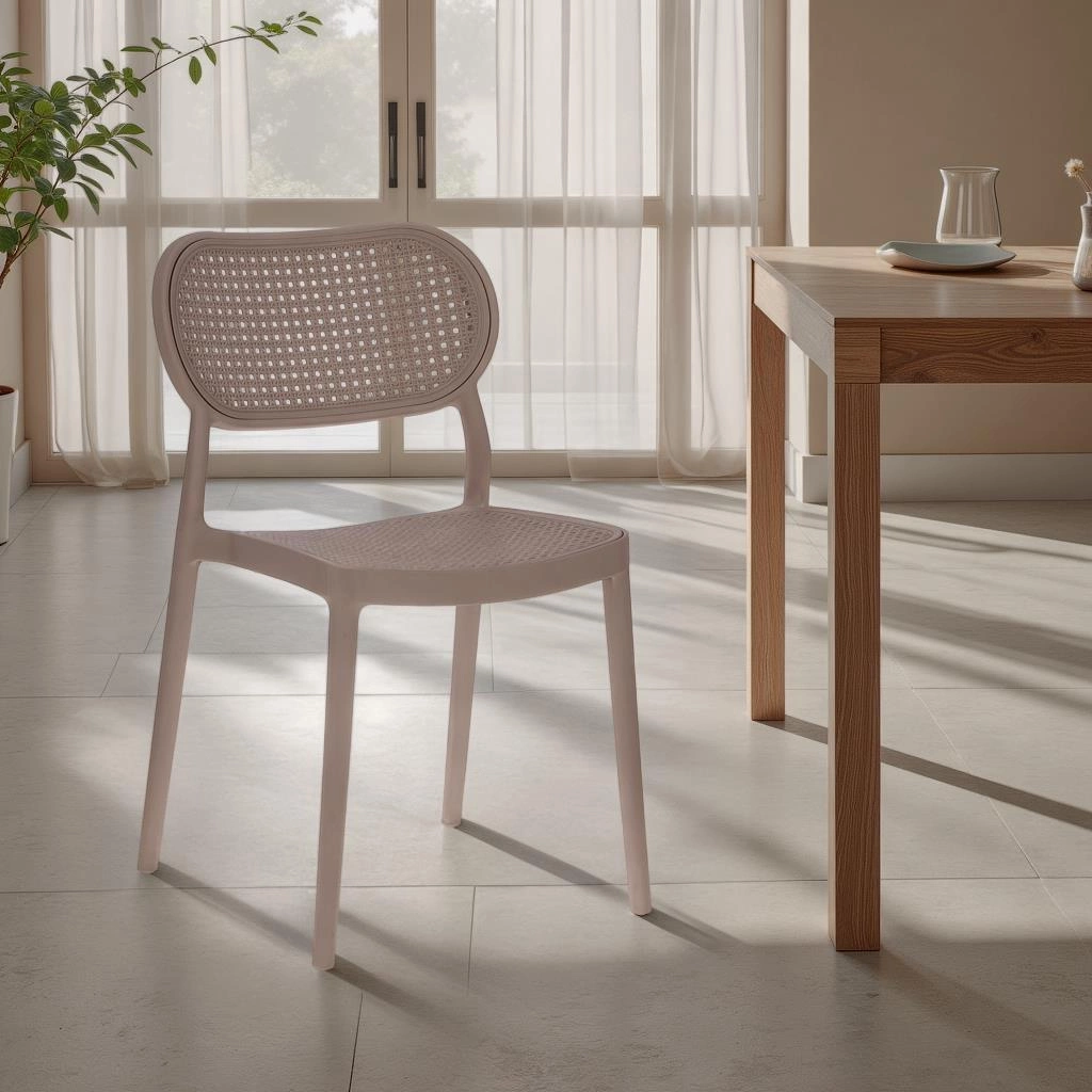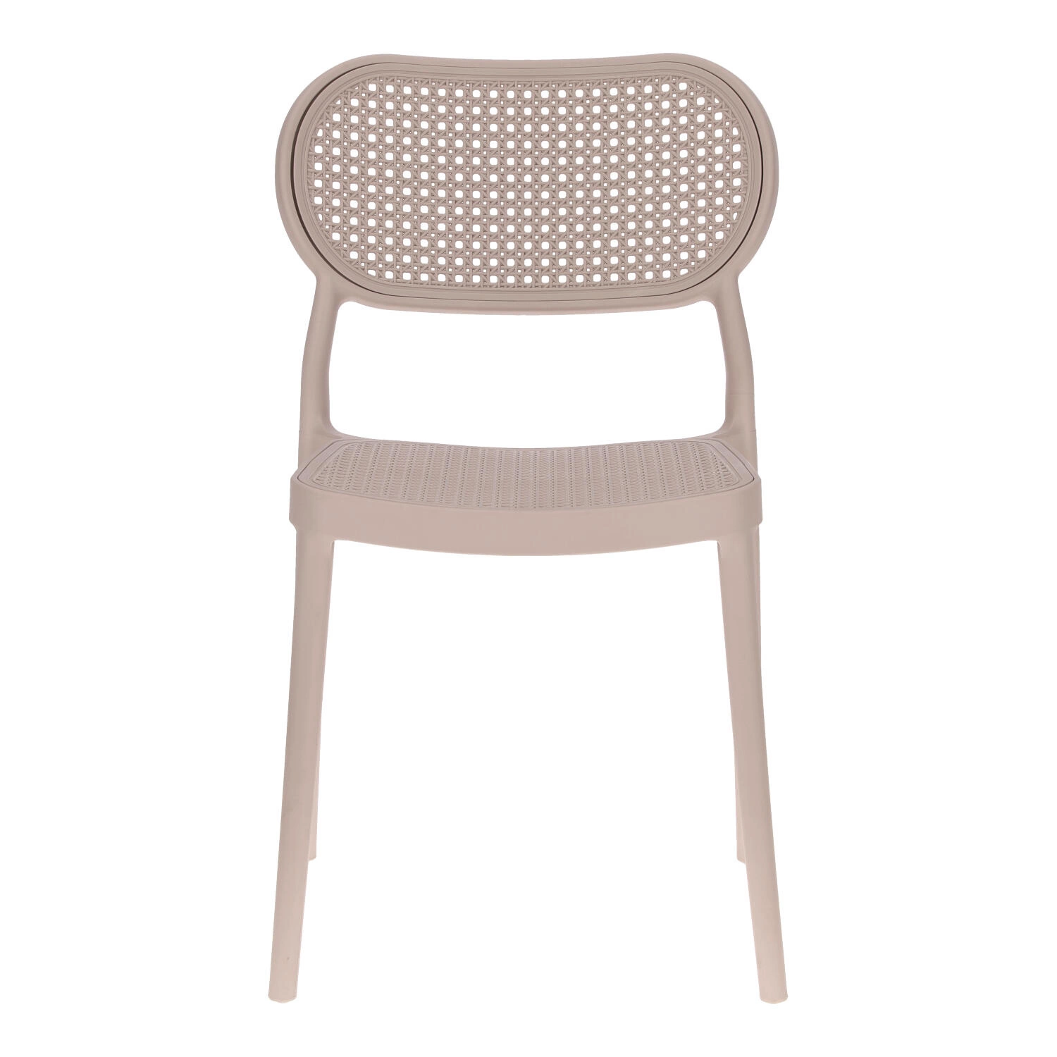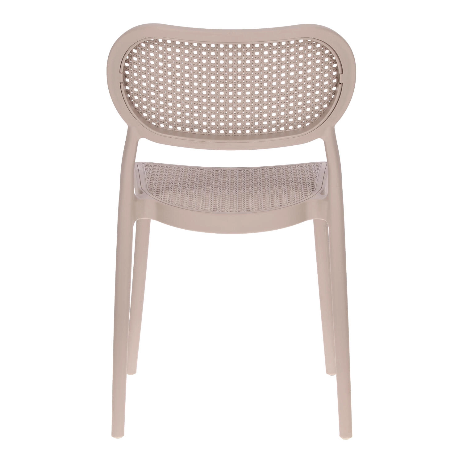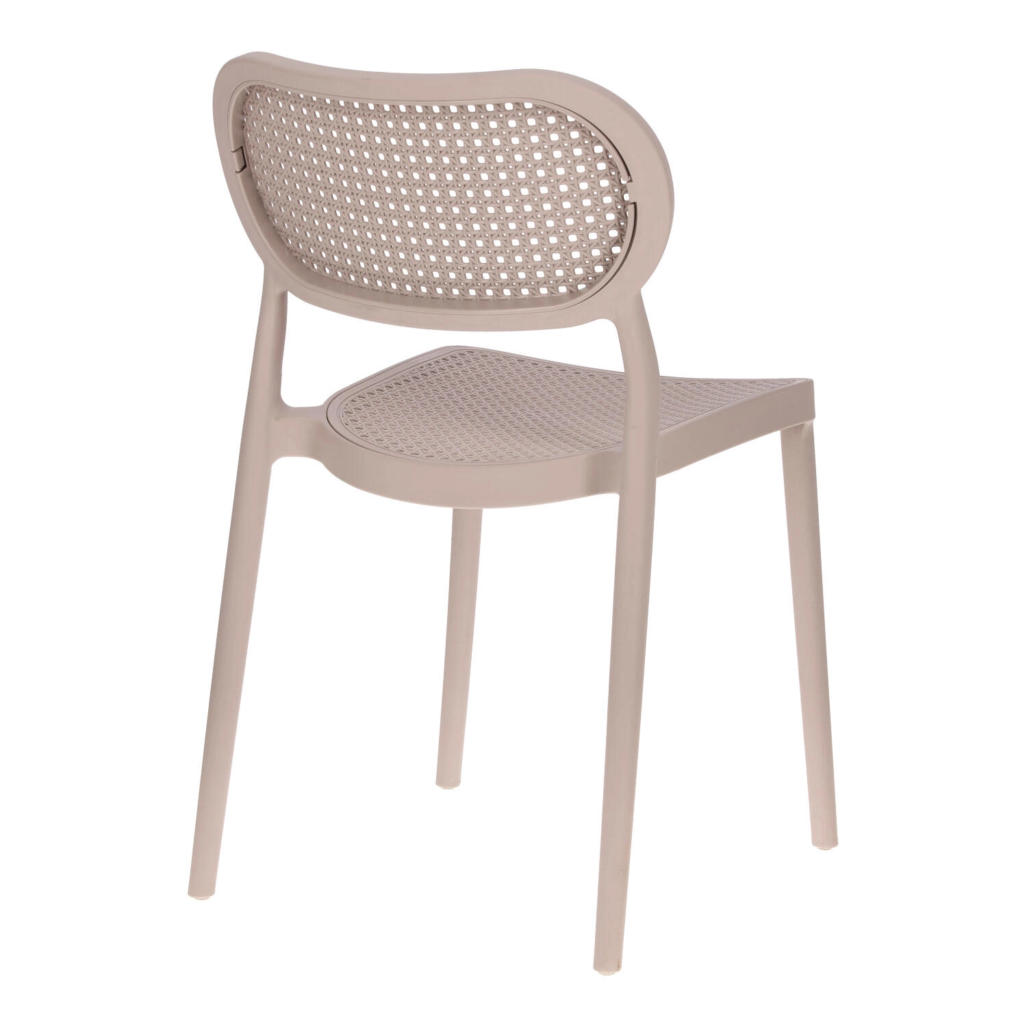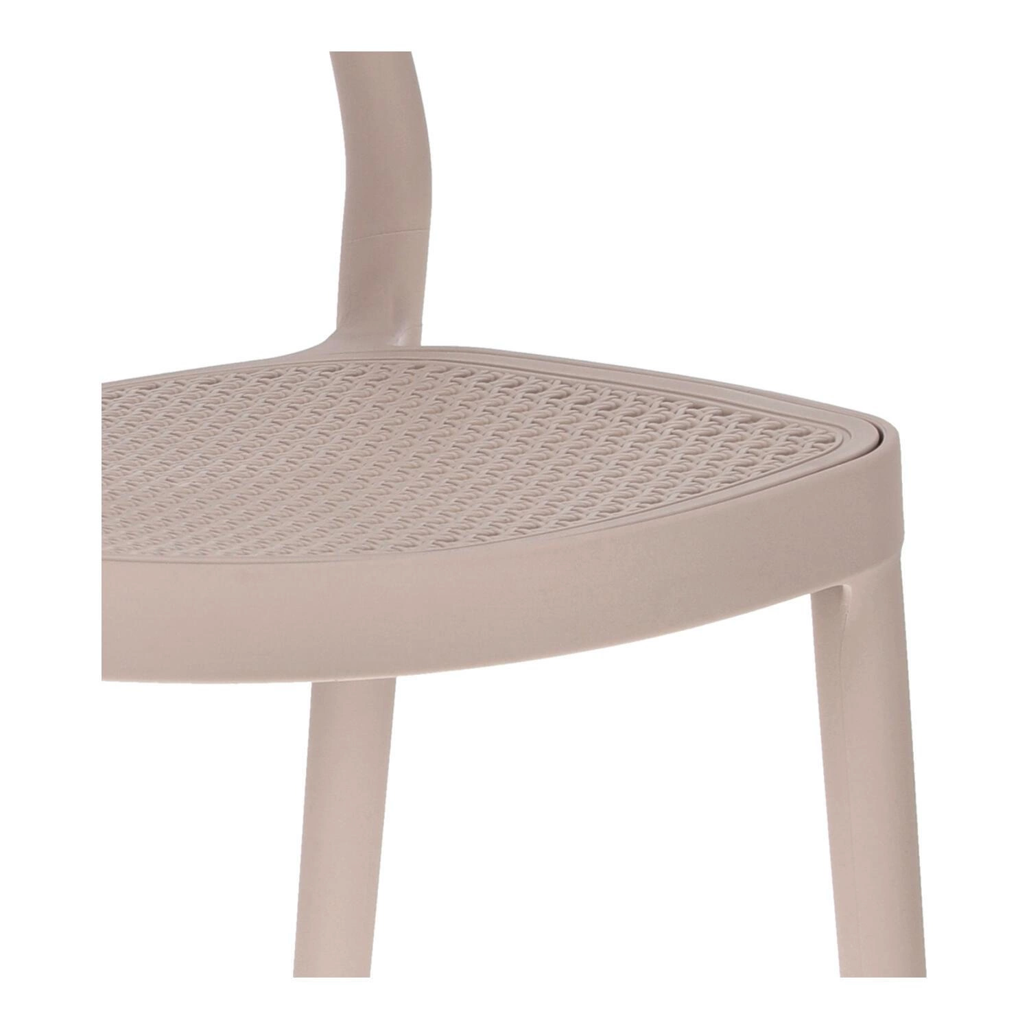 Minimalistyczna forma oraz charakterystyczny, pleciony wzór na siedzisku i oparciu nawiązują do klasycznych mebli wiedeńskich, a jednocześnie nadają całości nowoczesnego wyrazu. Beżowy kolor harmonizuje z naturalnymi materiałami i jasnymi przestrzeniami, co pozwala na swobodne łączenie krzeseł z innymi elementami wyposażenia. Subtelny odcień taupe sprawia, że krzesła wpiszą się zarówno w nowoczesne, jak i bardziej tradycyjne aranżacje, dodając im lekkości i przytulności. Dzięki uniwersalnemu kolorowi krzesła łatwo dopasować do różnych stylów wnętrz i przestrzeni zewnętrznych.