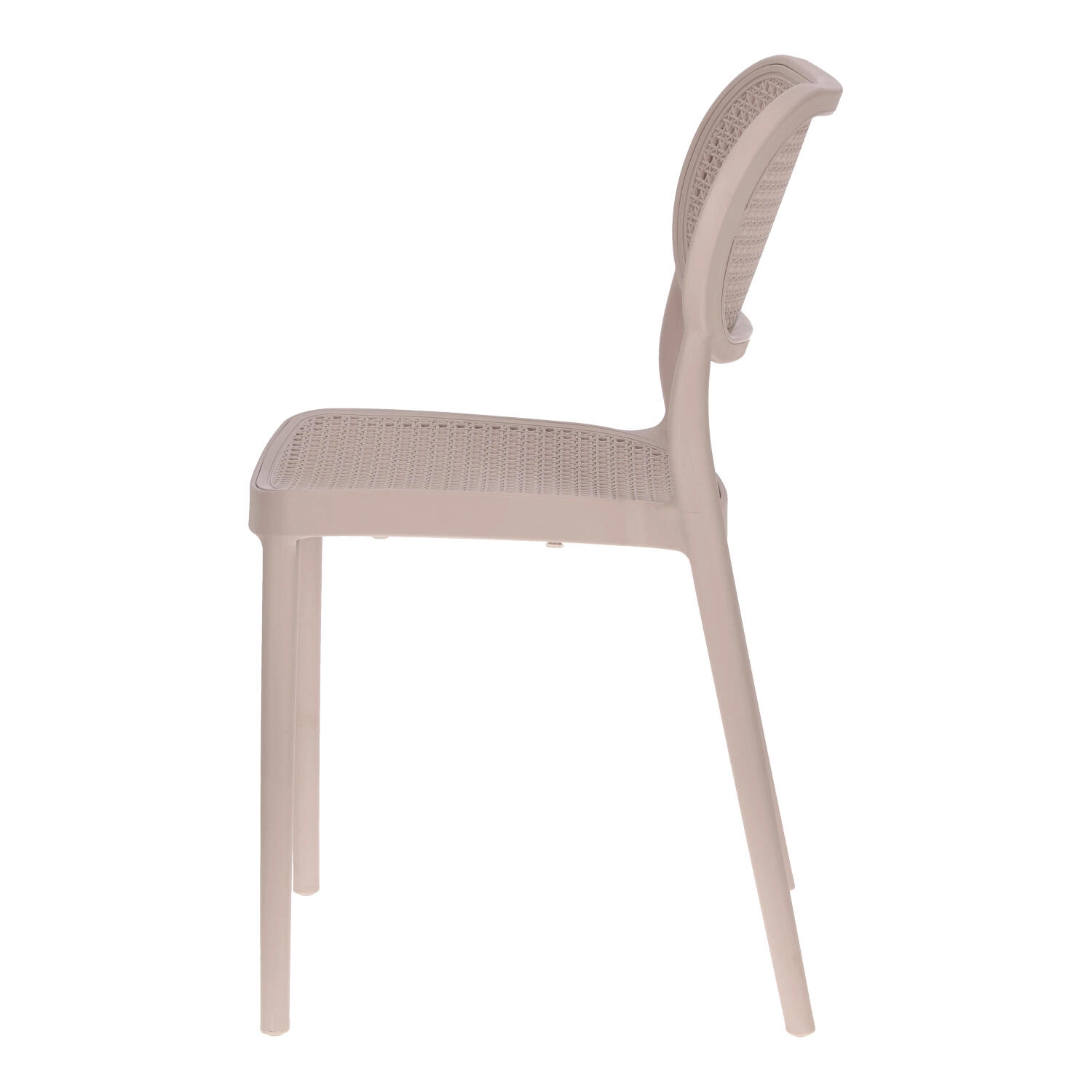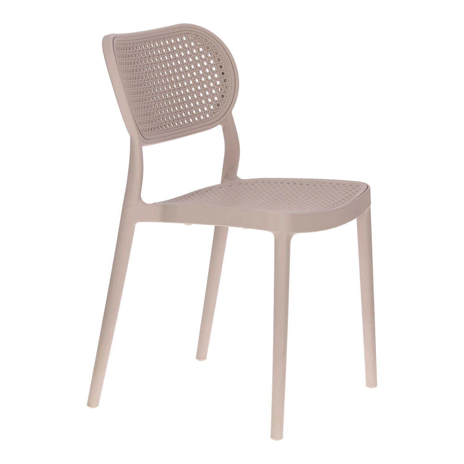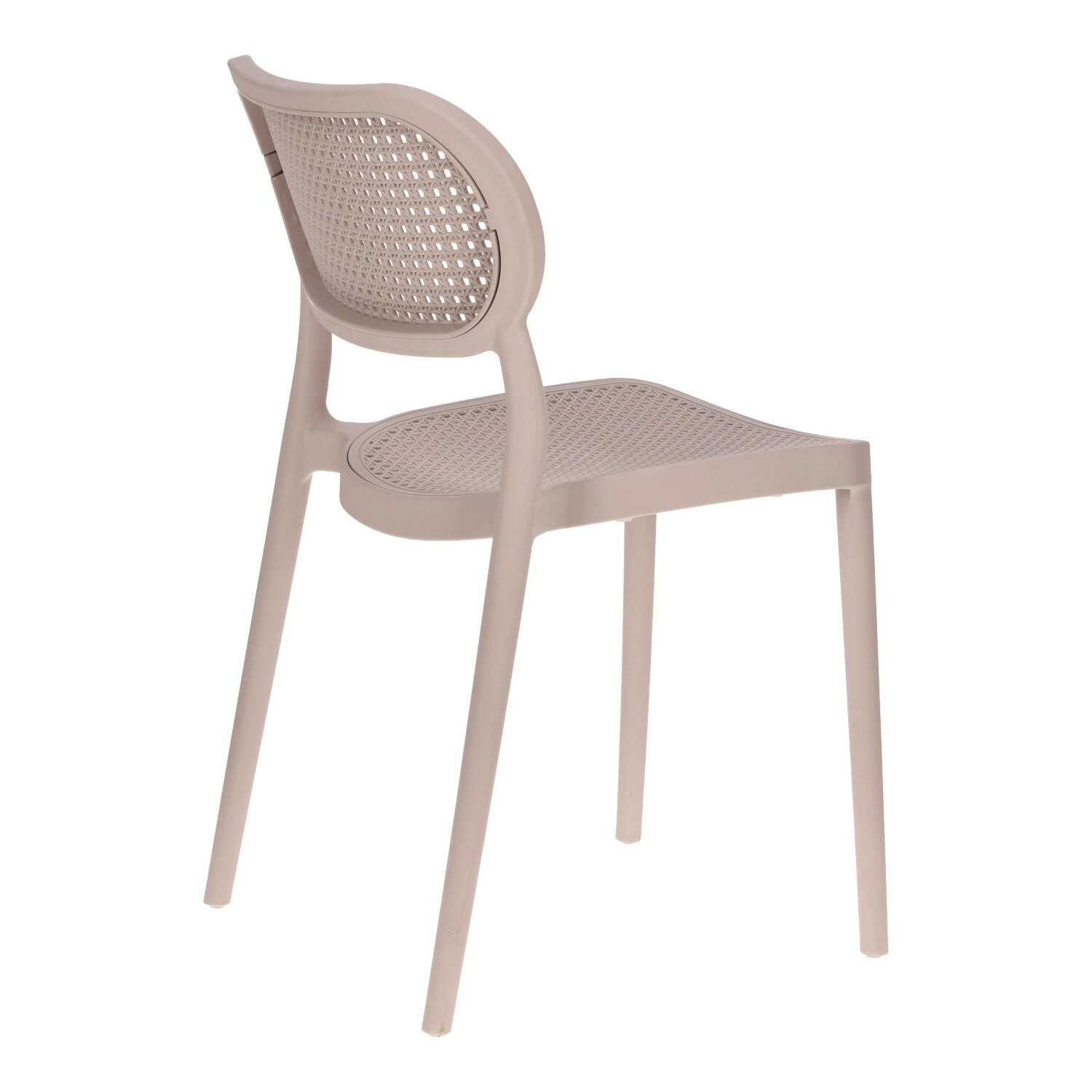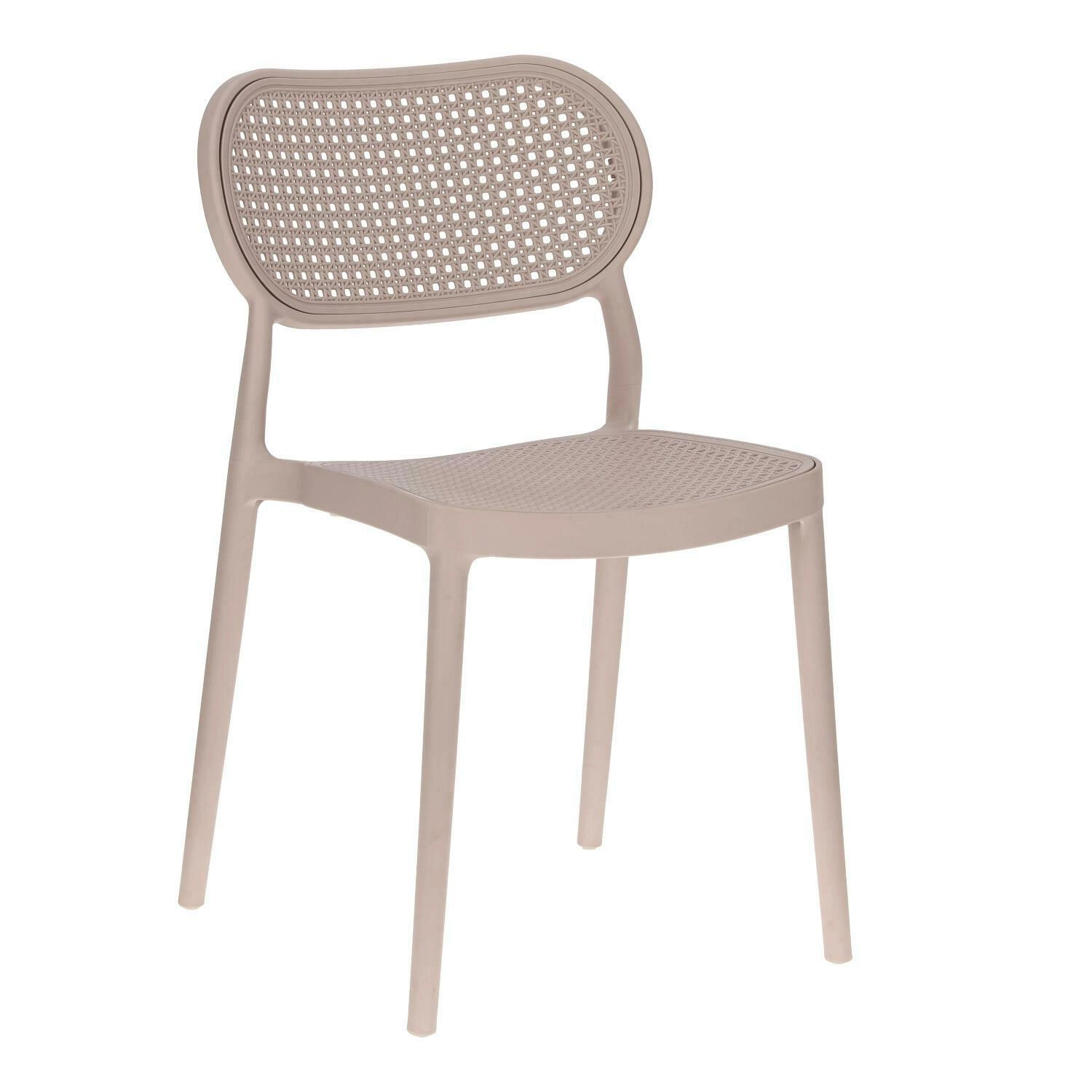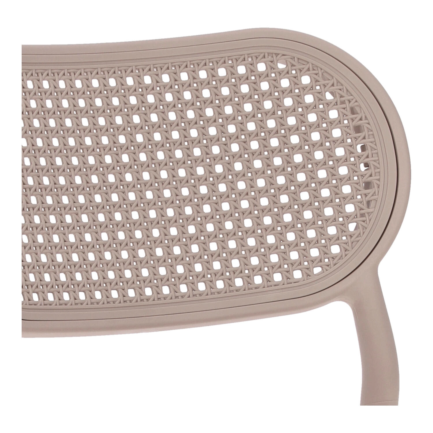Minimalistyczna forma oraz charakterystyczny, pleciony wzór na siedzisku i oparciu nawiązują do klasycznych mebli wiedeńskich, a jednocześnie nadają całości nowoczesnego wyrazu. Beżowy kolor harmonizuje z naturalnymi materiałami i jasnymi przestrzeniami, co pozwala na swobodne łączenie krzeseł z innymi elementami wyposażenia. Subtelny odcień taupe sprawia, że krzesła wpiszą się zarówno w nowoczesne, jak i bardziej tradycyjne aranżacje, dodając im lekkości i przytulności. Dzięki uniwersalnemu kolorowi krzesła łatwo dopasować do różnych stylów wnętrz i przestrzeni zewnętrznych.