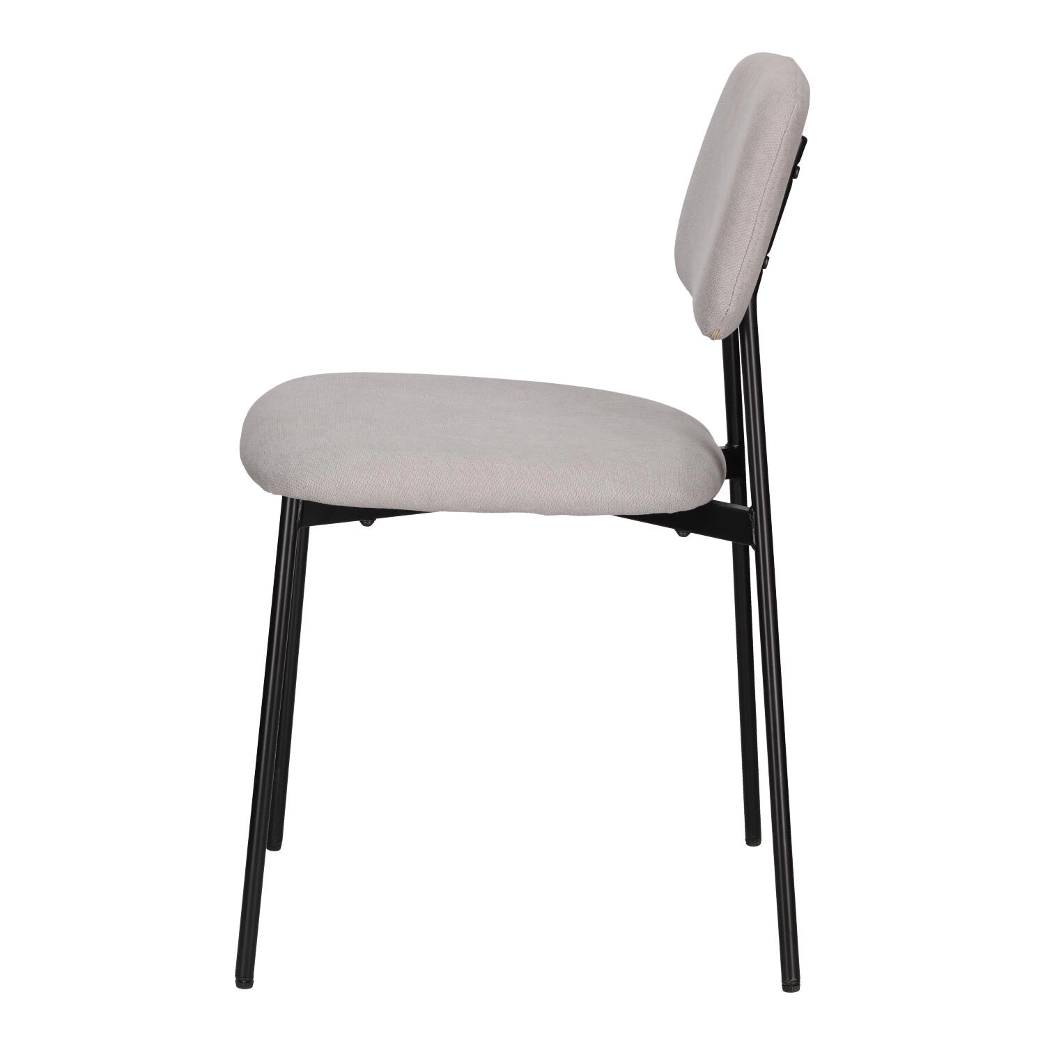 Wykorzystanie wysokiej jakości tkaniny sprawia, że siedzisko jest miękkie i przyjemne w dotyku, zapewniając komfort nawet podczas dłuższego siedzenia. Metalowa podstawa gwarantuje stabilność oraz wytrzymałość konstrukcji – maksymalne obciążenie wynosi aż 120 kg. To połączenie materiałów sprawia, że krzesła Esther są nie tylko stylowe, ale również odporne na codzienne użytkowanie. Tapicerka w jasnoszarym odcieniu jest łatwa do utrzymania w czystości i świetnie prezentuje się w każdym wnętrzu, a metalowe nogi dodają całości nowoczesnego charakteru.