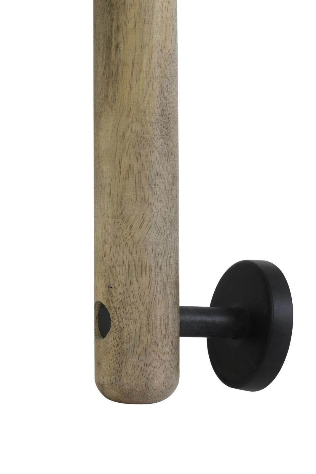 Kinkiet w stylu Loftowym to nie tylko punktowe oświetlenie, ale również instalacja, która ozdobi ścianę w sypialni lub salonie. Metalowy czarny klosz został zainstalowany na czarnej, metalowej długiej ramie. Drewniany motyw na górze klosza oraz na elemencie przylegającym do ściany nawiązuje do natury. Przewód lampy został ukryty w dolnym wsporniku lampy, dzięki czemu nie będzie widoczny podczas zamontowania kinkietu.