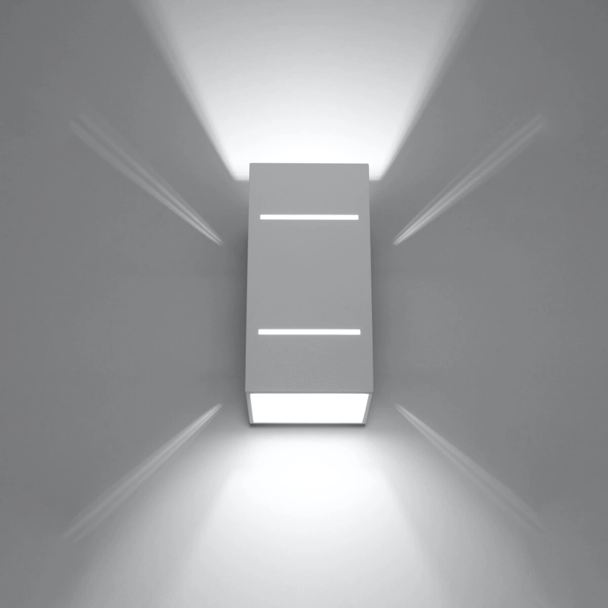 Ten nieduży, a jednocześnie efektowny kinkiet doskonale wpisuje się w charakter najróżniejszych aranżacji. Ze względu na dostępność trzech różnych wersji kolorystycznych z łatwością dopasujesz go do różnych mebli i tapet. Geometryczna forma o małych gabarytach to idealne rozwiązanie, gdy we wnętrzu potrzebne jest dodatkowe dekoracyjne światło. Kinkiet Blocco sprawdzi się doskonale zamontowany w korytarzu, małej sypialni lub pokoiku dziecka. Jego światło przenikające przez wycięte ażury stworzy przyjazny efekt na ścianie i z pewnością nada się do oświetlenia niedużej przestrzeni lub jako oświetlenie dekoracyjne.