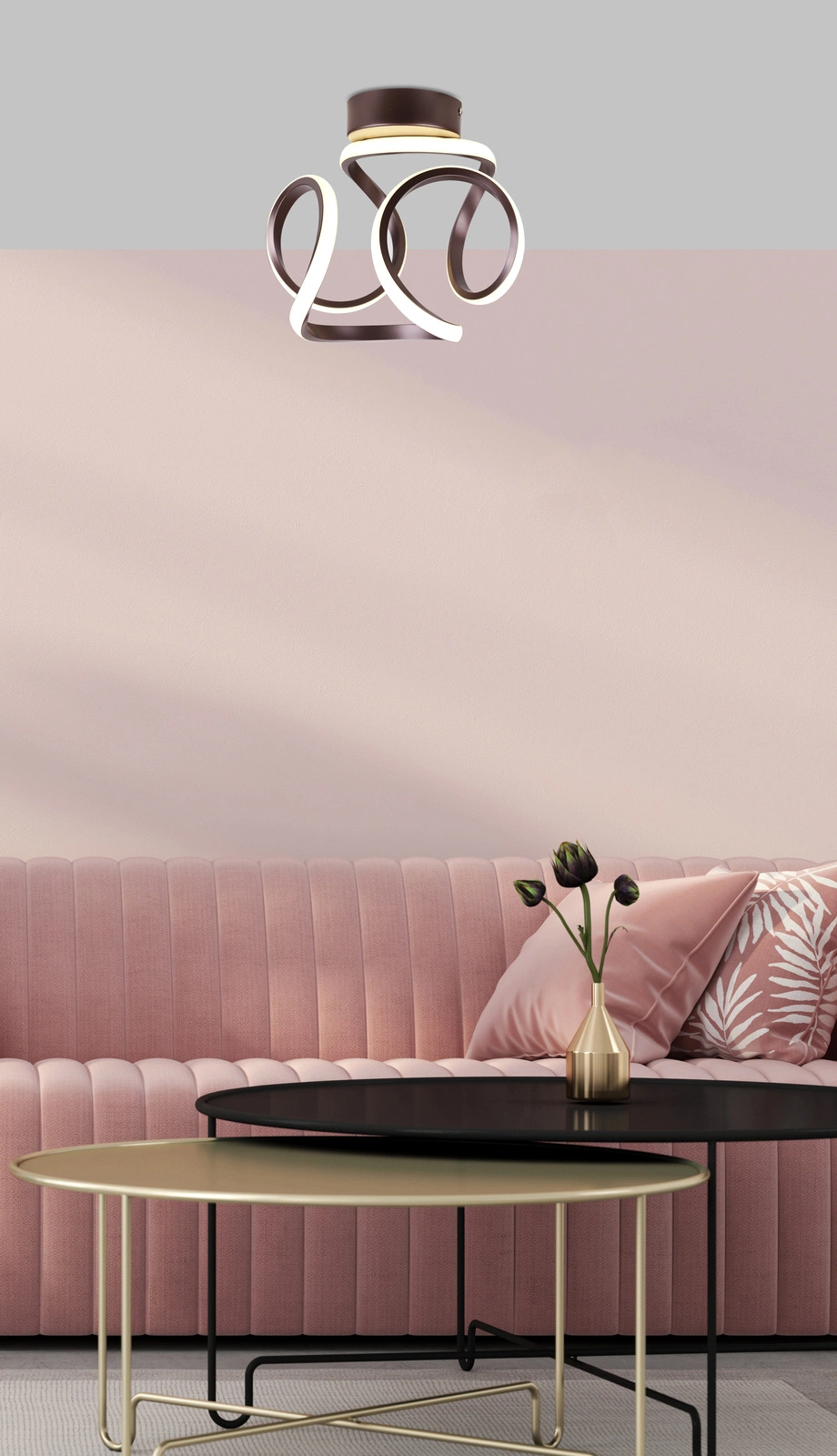 Produkt z ekskluzywnej linii marki APETI. Nowoczesna lampa wisząca o niestandardowym kształcie. Lampa dzięki swojej formie daje niesamowity efekt 3D. Połączenie metalu o brązowym zabarwieniu z ledem dają niesamowity efekt po zaświeceniu. Dopasuje się do każdego rodzaju pomieszczeń.