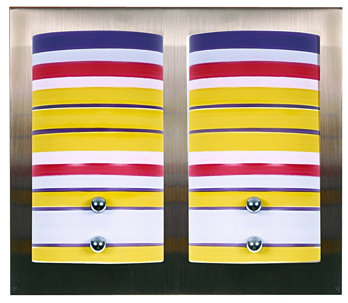 Kinkiet Fresco został zaprojektowany z myślą o nowoczesnych wnętrzach. Jego pięciokolorowy klosz i metalowa podstawa w matowym niklu tworzą unikalną kombinację, która doda charakteru każdemu pomieszczeniu. Lampa jest wyposażona w dwa gniazda G9, co zapewnia odpowiednie oświetlenie i doskonały wygląd.