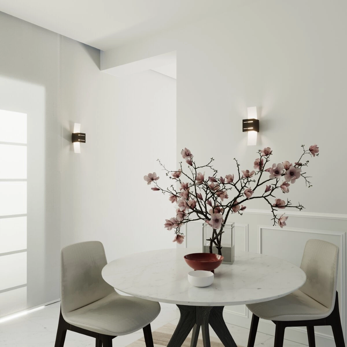 Kinkiet posiada jedno źródło światła w oprawie G9 i o maksymalnej mocy 40W.