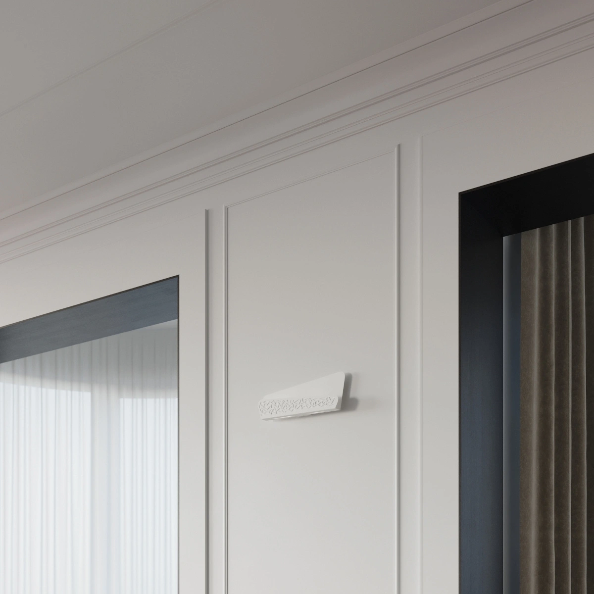 - Białe wykończenie – optycznie powiększa przestrzeń i dopasowuje się do różnych kolorów ścian