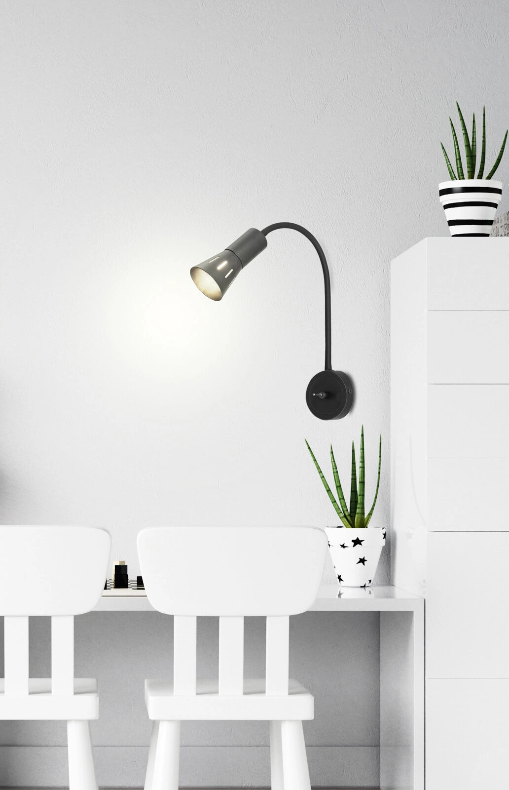 Prezentowany kinkiet Arena to połączenie elegancji i praktyczności. Cechuje się nie tylko atrakcyjnym wyglądem, ale przede wszystkim funkcjonalnością. Wyposażony w elastyczny wysięgnik, umożliwia precyzyjne kierowanie światłem, co jest niezwykle przydatne podczas wieczornego czytania lub pracy. Dostępny jest w czterech kolorach: czarnym, niklowanym, złoto patynowanym i białym, dzięki czemu można go dopasować do każdego wnętrza.