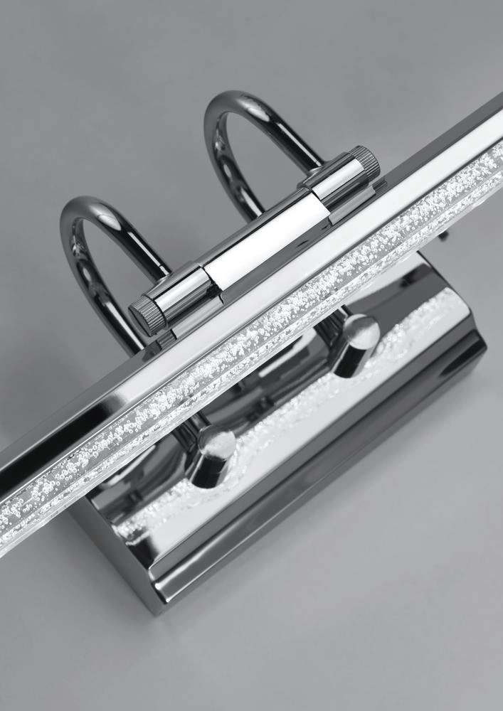 Nowoczesny kinkiet Gizel 7W LED 6500K chrom to połączenie elegancji i funkcjonalności. Jego wyjątkowy design to efekt połączenia lśniącego chromu z transparentnym akrylem. W środku klosza znajdują się dekoracyjne pęcherzyki powietrza, które po zaświeceniu lampy odbijają się w lustrzanej powierzchni chromowanej podstawy, tworząc imponujący efekt. Dodatkowo, ruchome połączenie ramienia z kloszem pozwala na regulację kąta padania światła, co jest niezwykle praktyczne, zwłaszcza gdy lampa jest umieszczona nad lustrem.