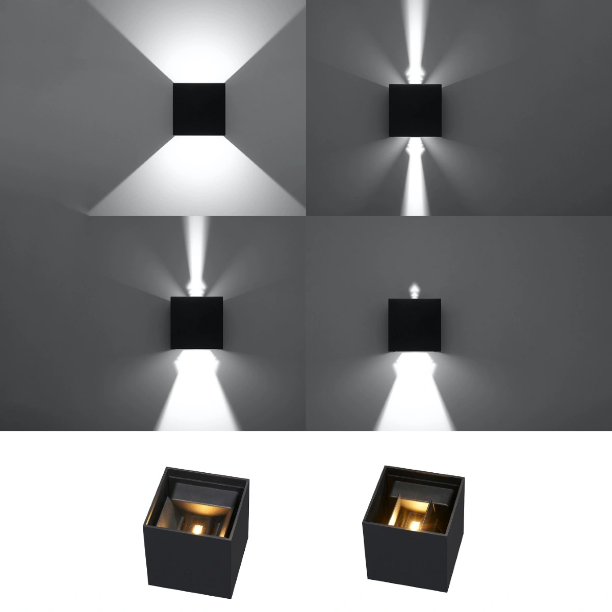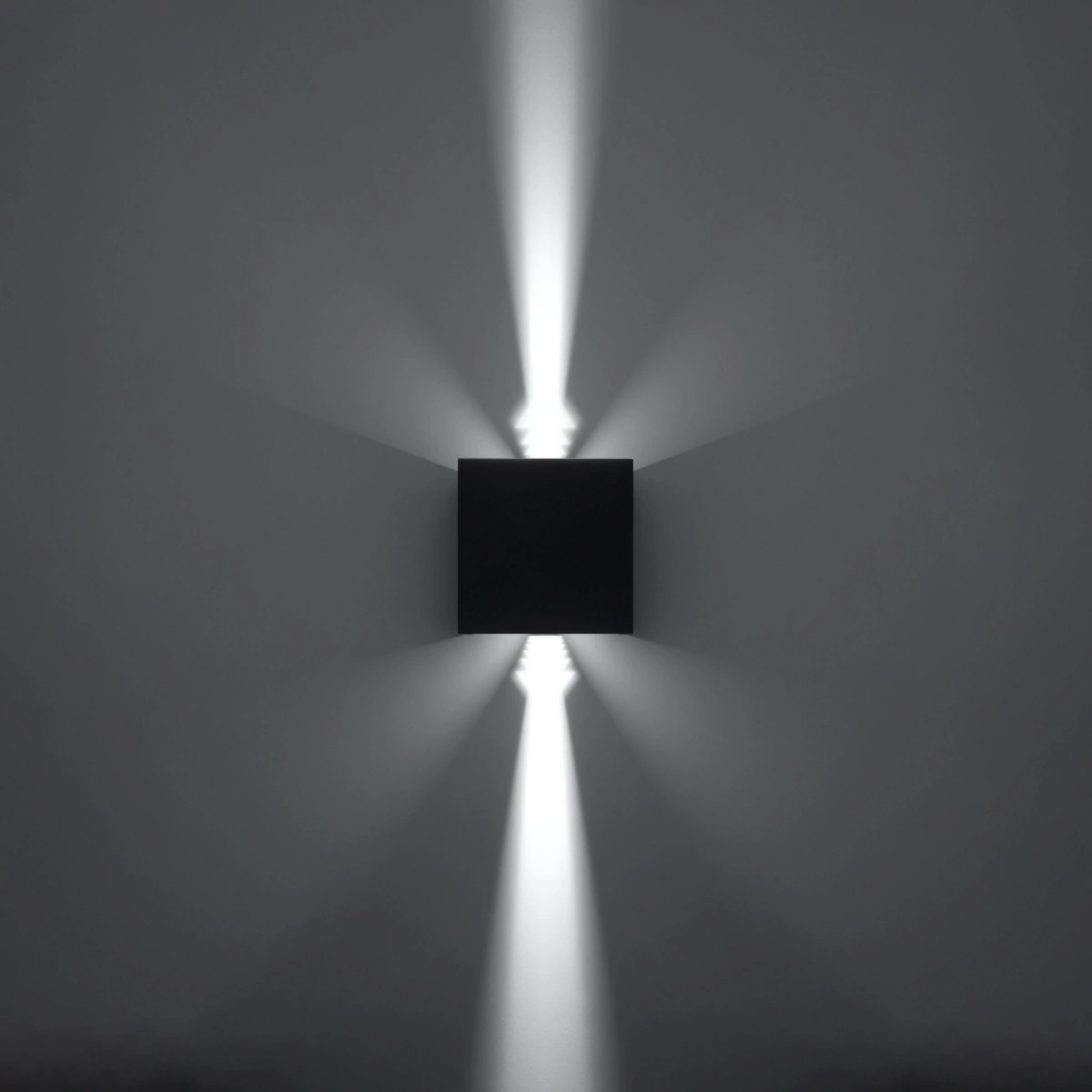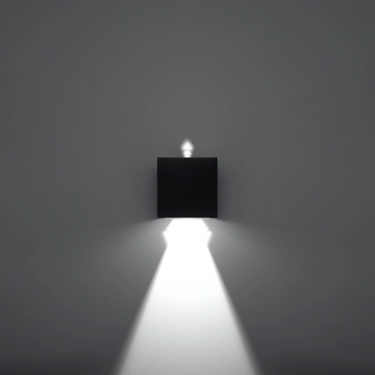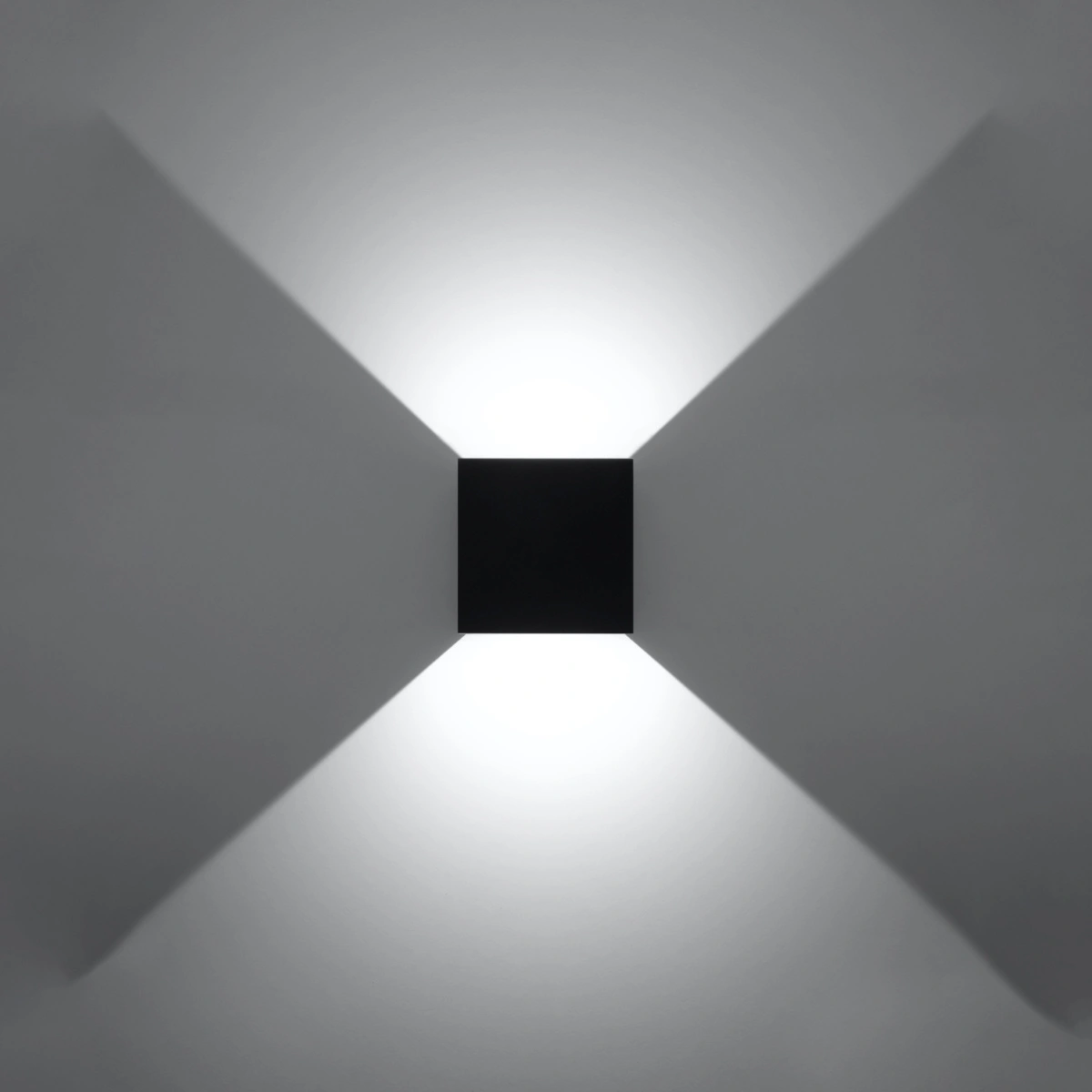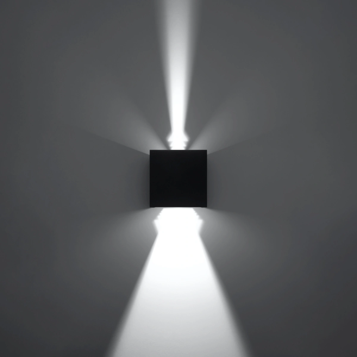 Kinkiet ścienny LED Luca marki Sollux to nowoczesna lampa o minimalistycznym, kwadratowym kształcie (10×10×10 cm), wykonana z trwałego aluminium w kolorze głębokiej czerni. Dzięki klasie szczelności IP54 doskonale sprawdza się zarówno jako kinkiet do salonu, jak i kinkiet zewnętrzny na elewację, taras lub balkon. Zintegrowane źródło światła LED gwarantuje oszczędność energii oraz długą żywotność, a podwójny kierunek świecenia zapewnia efektowne podświetlenie ściany i wydobywa wyjątkowy klimat w nowoczesnych aranżacjach.