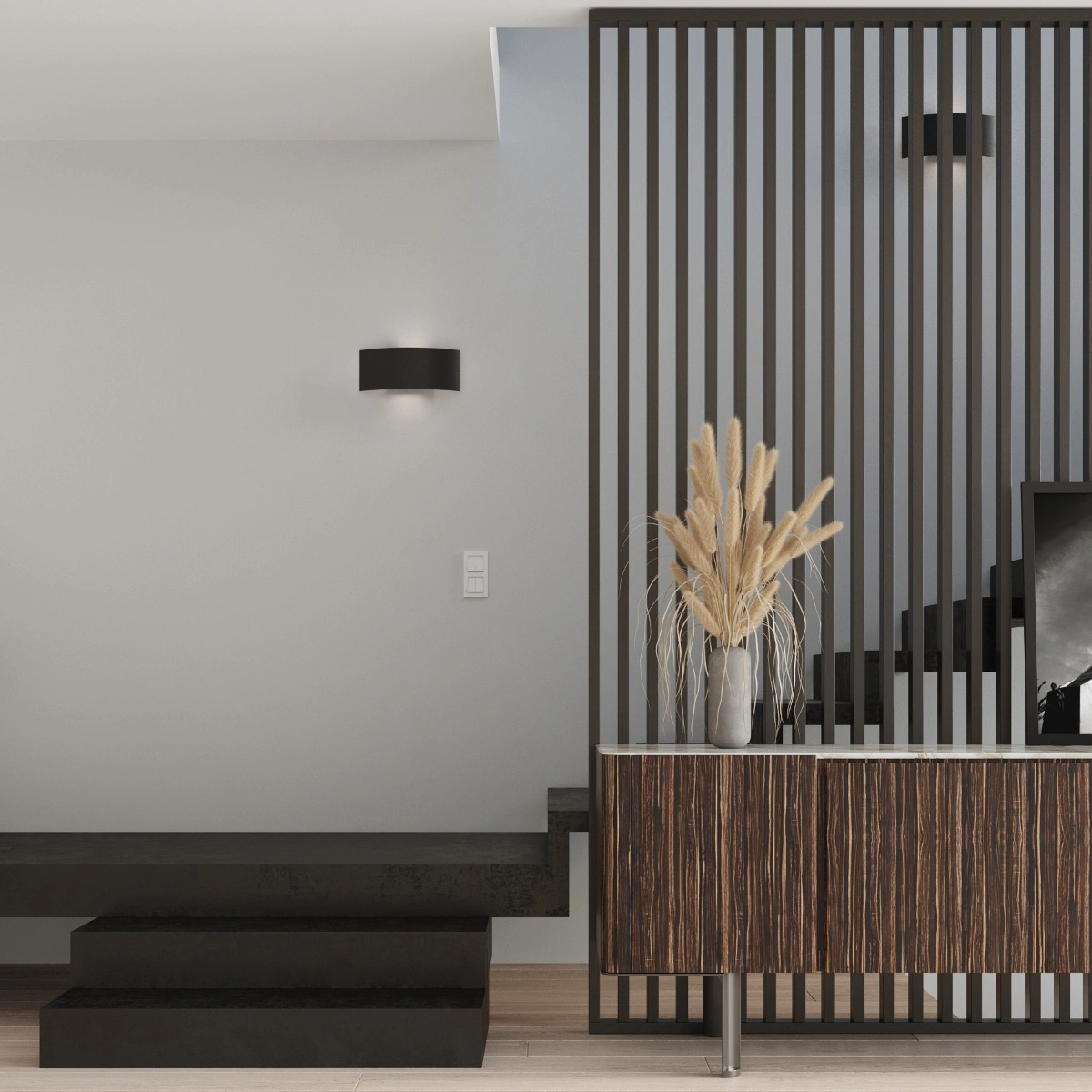 Kinkiet Magnus to propozycja dla osób ceniących prostotę formy i funkcjonalność. Niewielka szerokość (8 cm) i smukła, wydłużona budowa sprawiają, że lampa doskonale prezentuje się zarówno solo, jak i w kompozycjach świetlnych na większej ścianie. Matowa czerń i industrialne wykończenie czynią ją wyrazistym elementem dekoracyjnym, który subtelnie podkreśla charakter nowoczesnego salonu czy sypialni. Dzięki uniwersalnemu wzornictwu kinkiet ścienny Magnus łatwo dopasować do różnych aranżacji – od loftu po minimalistyczny apartament.