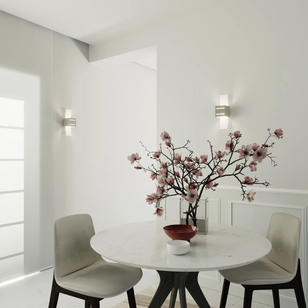 Kinkiet posiada jedno źródło światła w oprawie G9 i o maksymalnej mocy 40W.