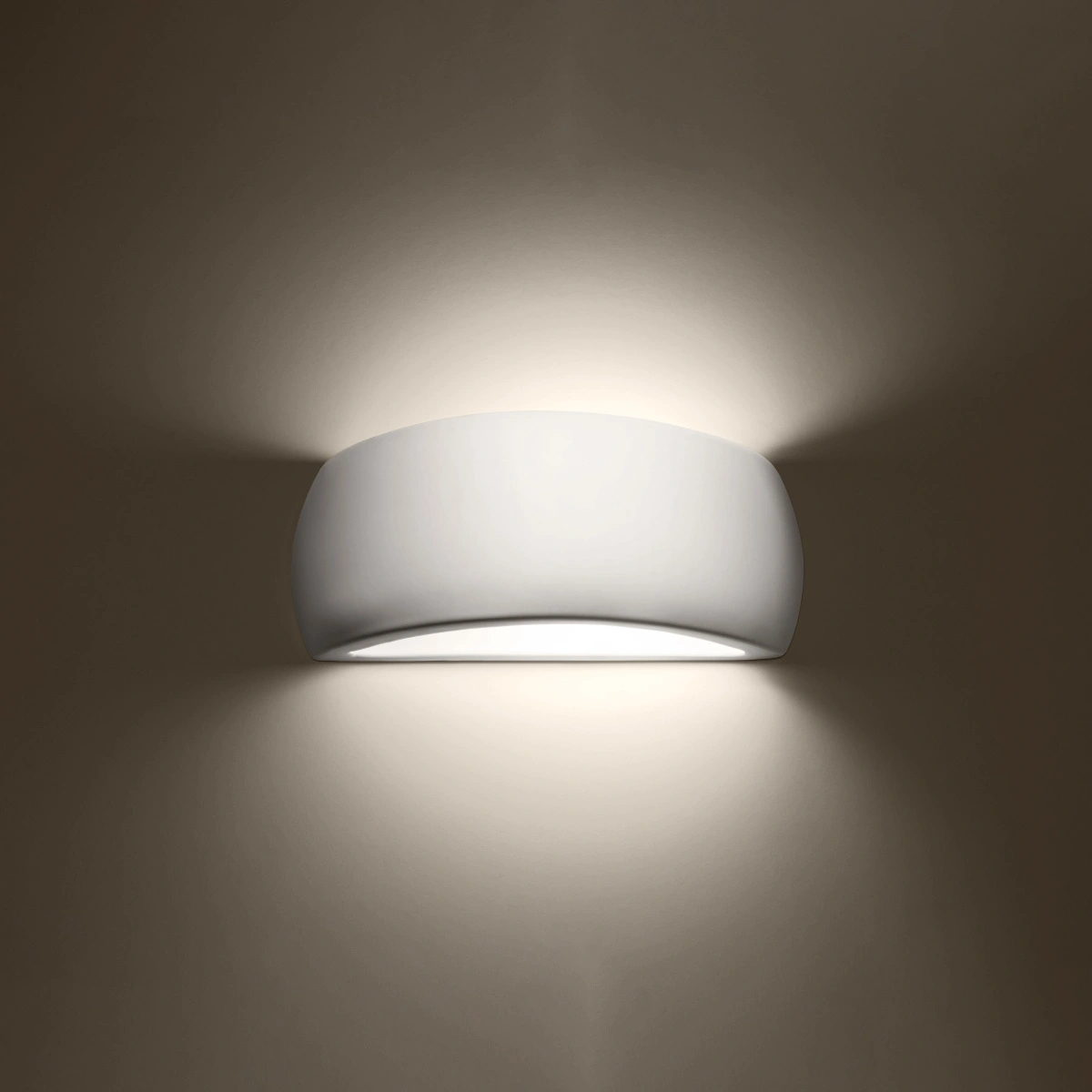 Minimalistyczny kinkiet Pontius to propozycja dla osób poszukujących stylowego, ale zarazem praktycznego oświetlenia. Biała, lśniąca ceramika prezentuje się niezwykle estetycznie, wnosząc do pomieszczeń lekkość i świeżość. Dzięki otwartej konstrukcji światło rozchodzi się zarówno w górę, jak i w dół, tworząc na ścianie efektowne świetlne akcenty. To doskonałe rozwiązanie do salonu, sypialni, łazienki czy na korytarz – wszędzie tam, gdzie liczy się zarówno komfort, jak i elegancka oprawa świetlna.