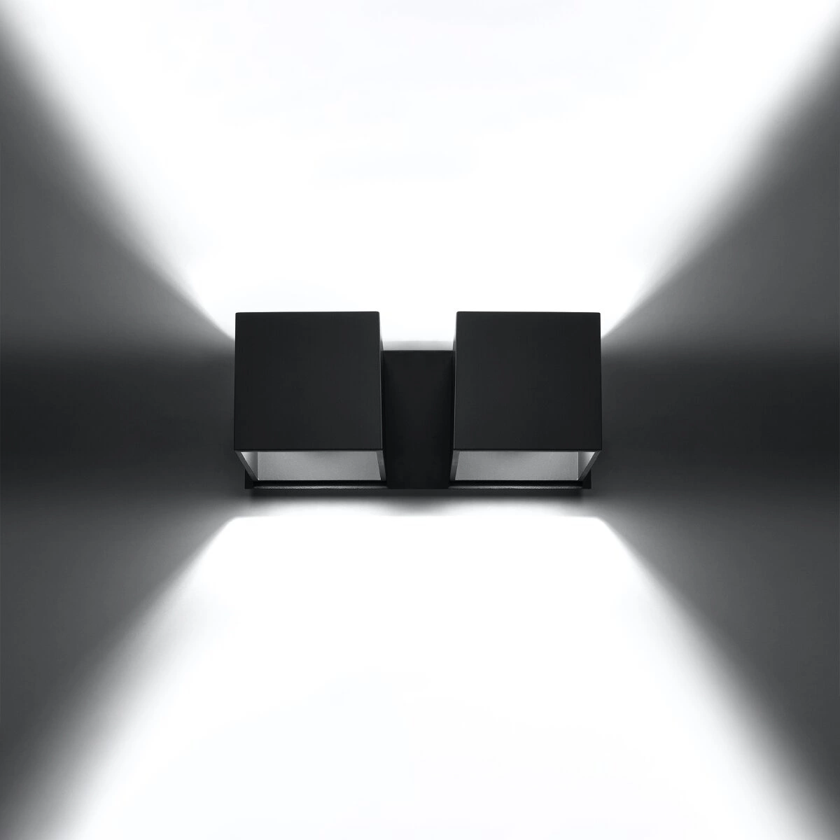 Kinkiet ścienny Quad 2 czarny nowoczesny podwójny metalowy do salonu i sypialni Sollux