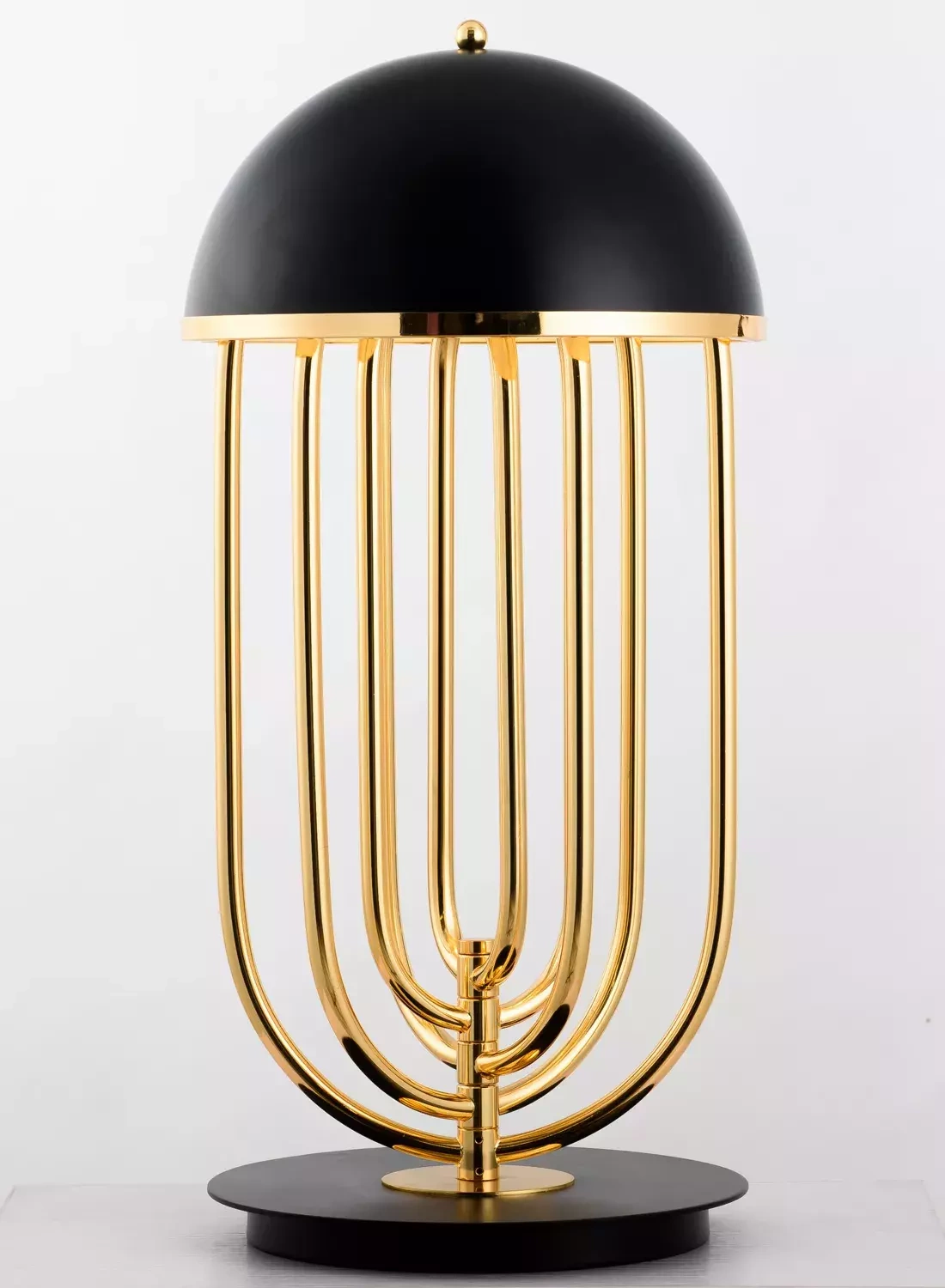 Dwukolorowa lampa DOLCE VITA wykończona jest na zewnątrz w czarnym matowym kolorze ze złotymi polerowanymi elementami.