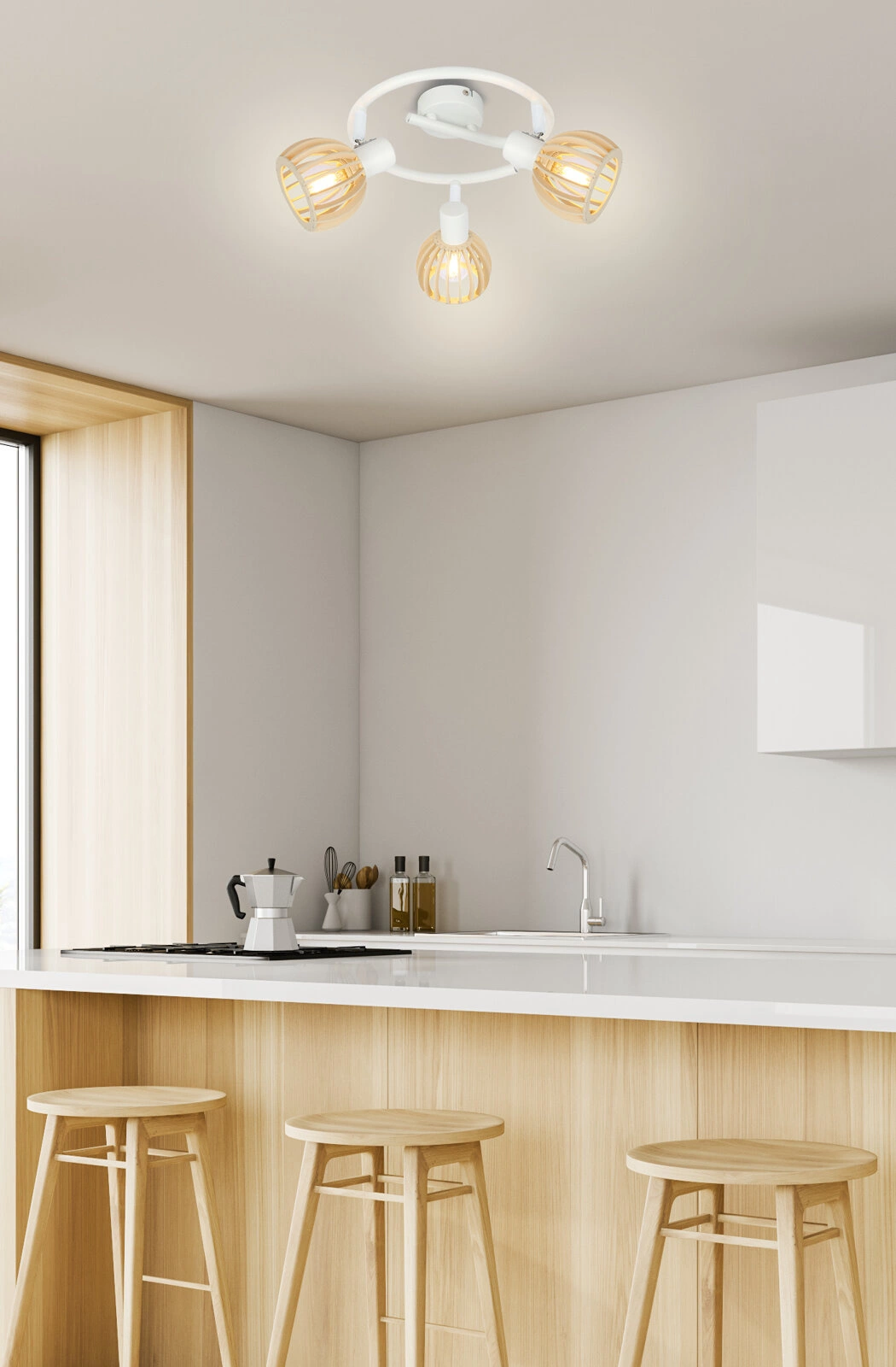 Lampa sufitowa Atarri spirala to doskonałe połączenie bieli i naturalnego drewna. Ta kolorystyka sprawdzi się w wielu nowoczesnych pomieszczeniach, takich jak łazienka, sypialnia, salon, przedpokój, pokój młodzieżowy, kuchnia czy jadalnia.