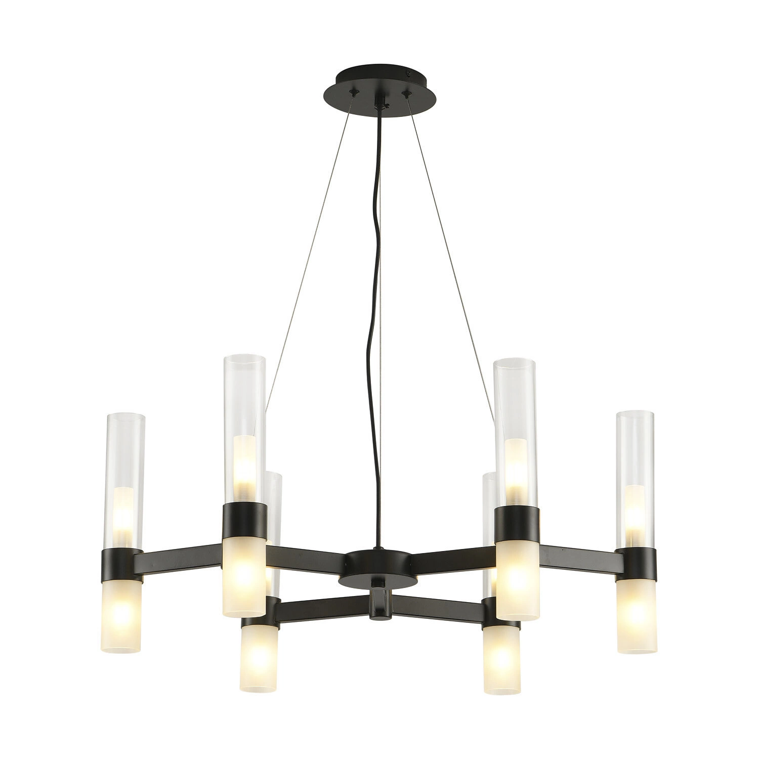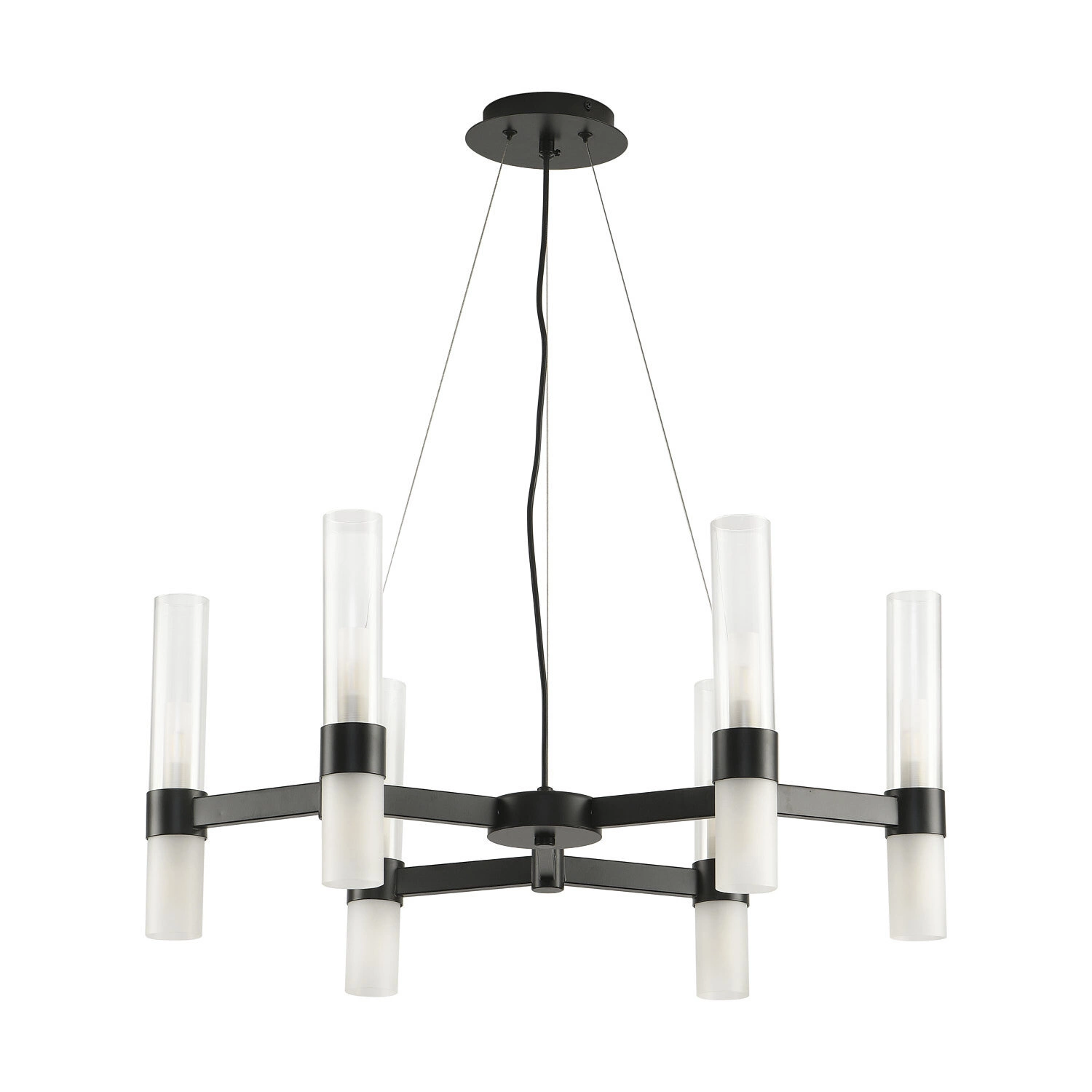 Lampa sufitowa CANDELA-6 to kwintesencja współczesnego minimalizmu – geometryczna forma, połączenie czerni z mleczną bielą szkła oraz prosta, a zarazem efektowna konstrukcja. Szklane klosze w kształcie kul subtelnie rozpraszają światło, wprowadzając do wnętrza przytulną atmosferę i podkreślając unikalny charakter aranżacji. Model ten stanowi stylowy akcent zarówno w nowoczesnych, jak i industrialnych przestrzeniach.