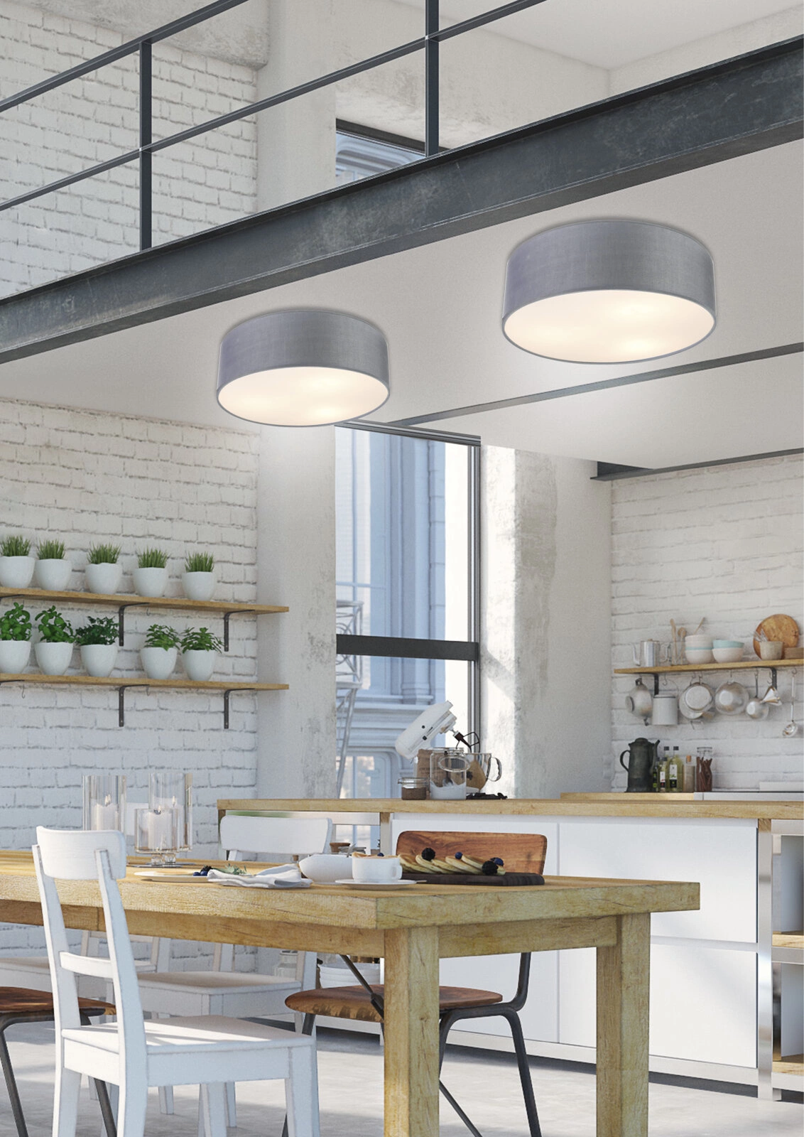 - Uniwersalny, jasno szary kolor lampy pasuje do większości wnętrz.
