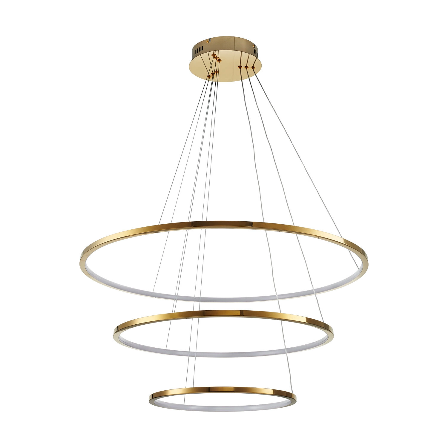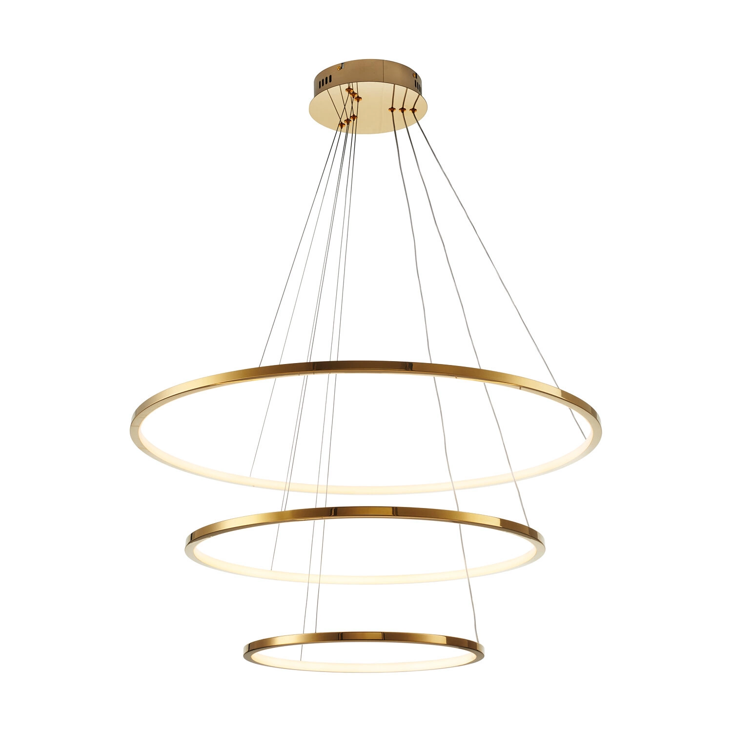 Lampa sufitowa LED CIRCLE SLIM Step into Design to nowoczesna, złota lampa wisząca o regulowanej wysokości, stworzona z myślą o stylowych wnętrzach salonu i jadalni. Wykonana z wytrzymałej stali nierdzewnej oraz tworzywa, zachwyca eleganckim, minimalistycznym designem i subtelnym blaskiem złota. Trzy źródła światła LED o barwie 3000K gwarantują komfortowe, przytulne oświetlenie, a możliwość dopasowania zawieszenia do 200 cm pozwala idealnie zaaranżować lampę nad stołem, wyspą lub w centralnej części pomieszczenia.