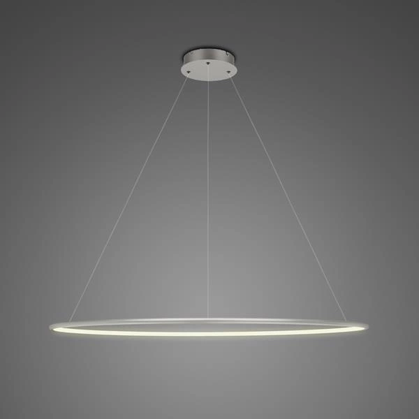 Prosta, okrągła forma tej lampy wiszącej doskonale wpisuje się w aktualne trendy aranżacyjne. Srebrny żyrandol LED subtelnie podkreśla charakter modernistycznych i minimalistycznych wnętrz, jednocześnie nie przytłaczając ich swoją obecnością. Dzięki dużej średnicy 100 cm lampa równomiernie oświetla przestrzeń, eliminując ostre cienie i zapewniając przyjemną, naturalną barwę światła (4000K).