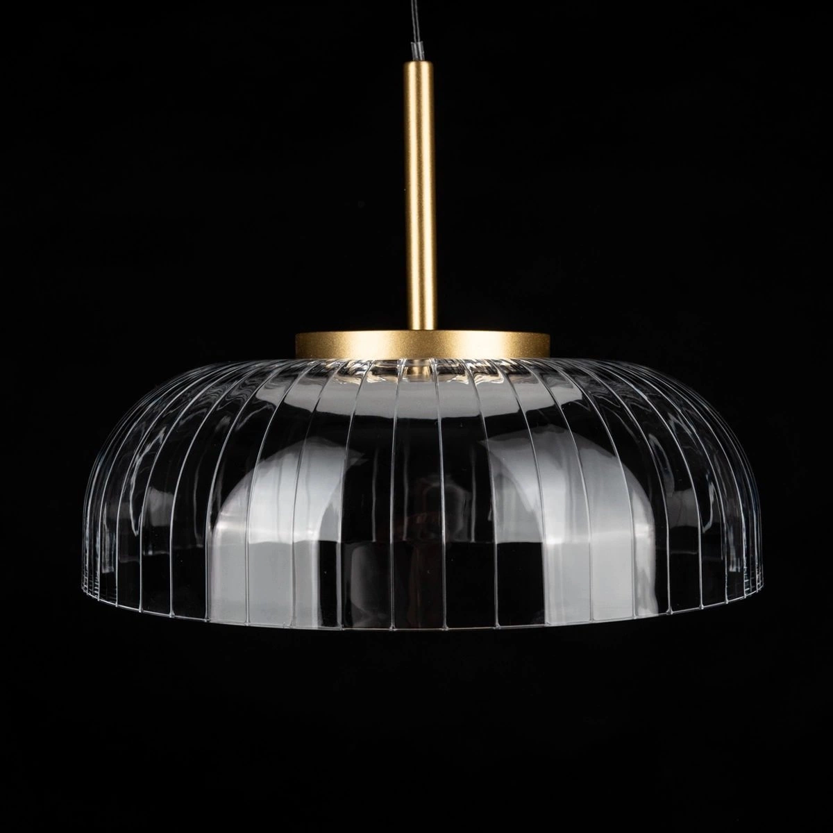 Lampa sufitowa LED Vitrum marki ALTAVOLA DESIGN to nowoczesna propozycja oświetlenia, która zachwyca szklanym kloszem w formie transparentnej kuli oraz eleganckim połączeniem czerni i złota. Model o wysokości 150 cm i szerokości 20 cm doskonale sprawdzi się jako pojedyncza lampa wisząca do salonu, jadalni lub kuchni. Zintegrowane źródło światła LED o mocy 7W i delikatnie ciepłej barwie 3000K zapewnia przyjemny klimat wnętrza, podkreślając jego stylowy charakter.