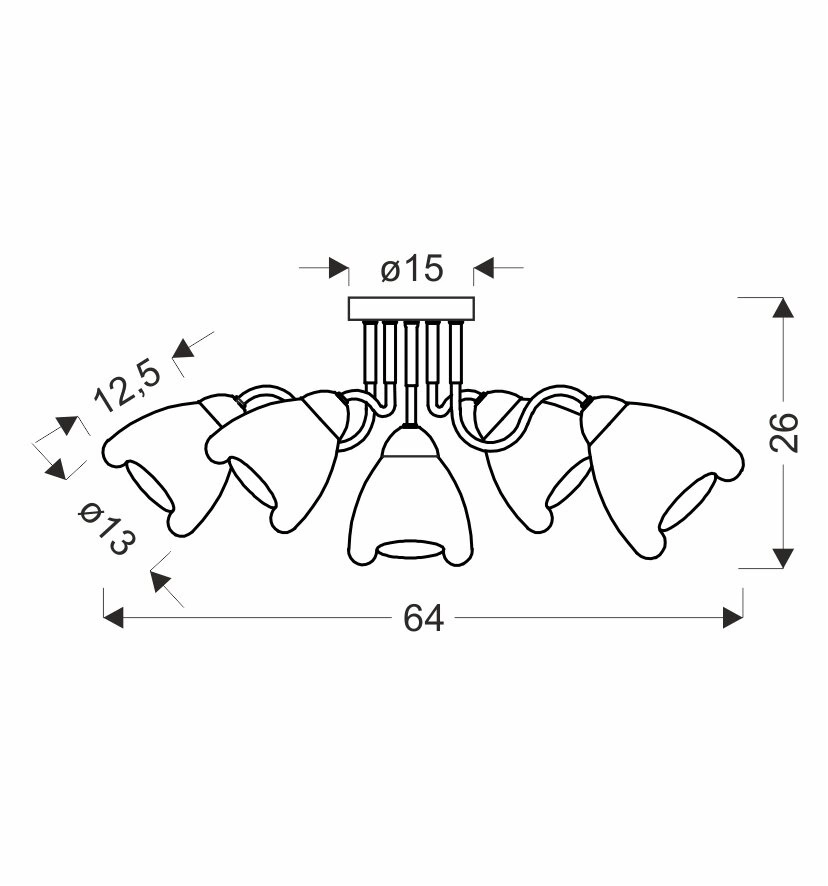 - Lampa sufitowa Unica posiada pięć gniazd E27 do żarówek o mocy do 40W