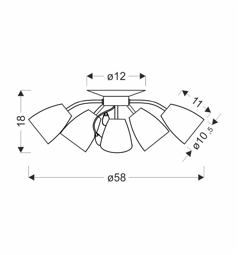 - Lampa Ursella wyposażona jest w 5 oprawek E14, do których można wkręcić żarówki o mocy do 40W.