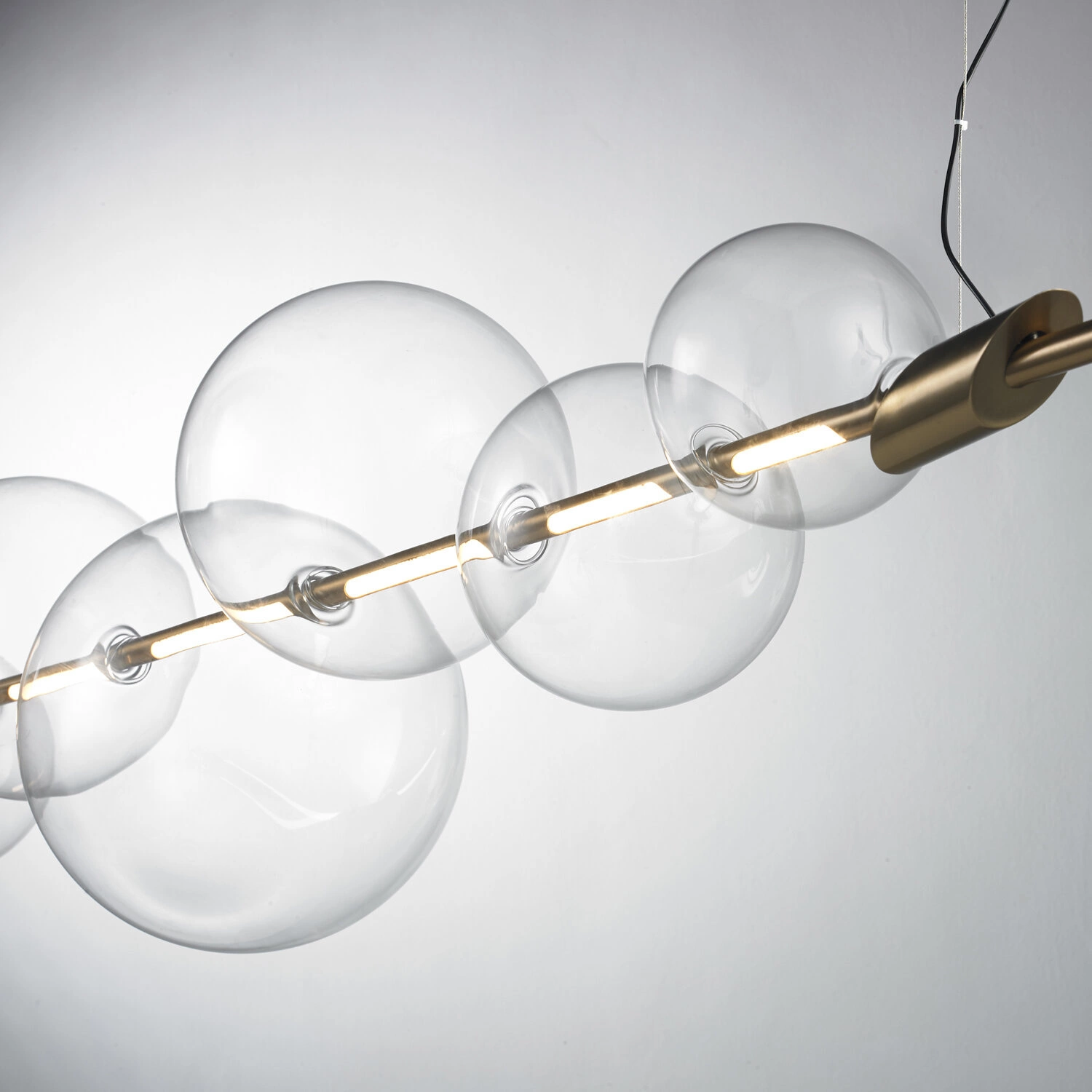 AMORE wykorzystuje ciepłą barwę światła LED, idealną do wieczornego relaksu i rodzinnych spotkań. Dzięki długości 153 cm i siedmiu równomiernie rozmieszczonym kloszom, lampa zapewnia równomierny rozsył światła, eliminując cienie i optycznie powiększając przestrzeń. To praktyczny wybór do kuchni nad wyspę, do przedpokoju, a także do sypialni, gdzie delikatne światło tworzy przytulny klimat.